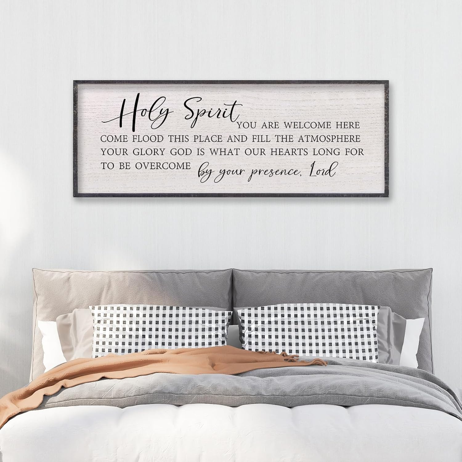 LuZhiQiang Holy Spirit You are Welcome Here Wall Decor 40"X15" Quote Christian Bible Verse Scripture Religious Art Wall Sign (Black)