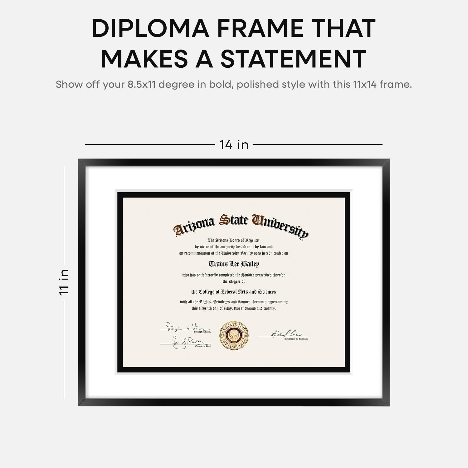 Homeforia 11x14 Diploma Frame Black, High End Metal 11 x 14 Certificate Frame with Mat 8.5 x 11 inch, 14x11 Document Frame Matted to 8.5x11, Award Graduation Frames, Tempered Glass, Wall Kit, Set of 1