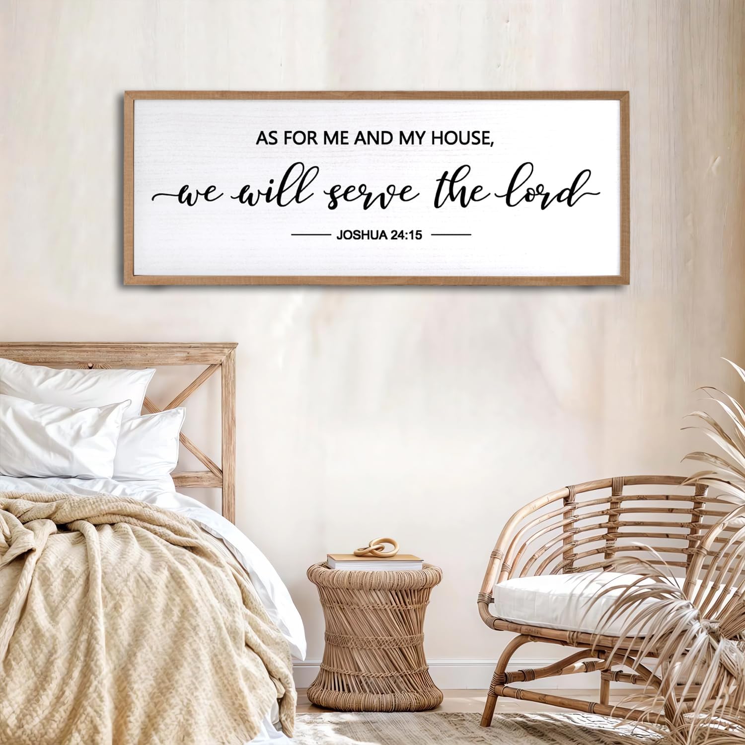 As For Me And My House We Will Serve The Lord Framed Wall Art, 32''×12'' Horizontal Positive Religious Rustic Bible Verse, Vintage Holy Catholic Scripture Decor for Christian God Jesus Christ Prayer