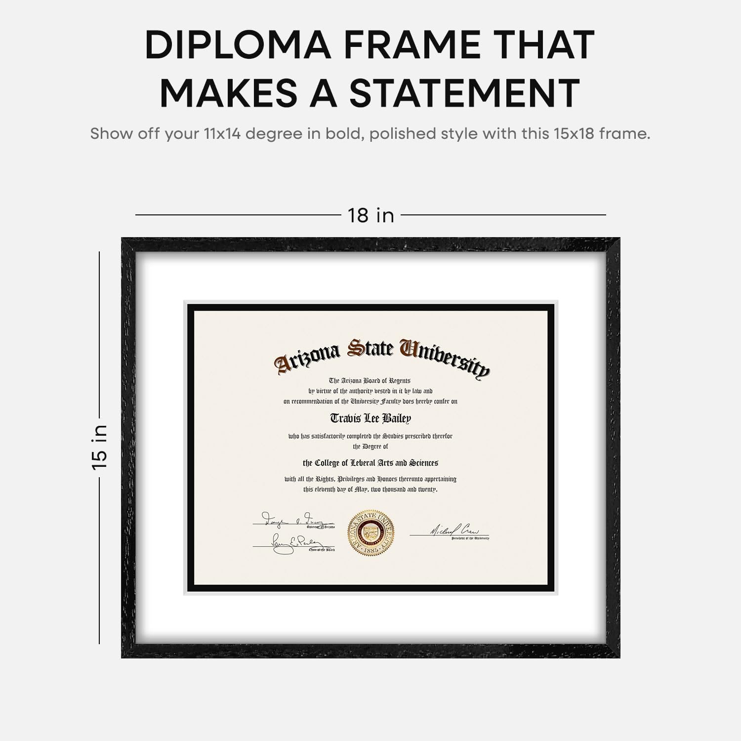 Homeforia 15x18 Diploma Black Wood Frame, High End Black Oak 15 x 18 Certificate Frames with Mat 11 x 14, 18x15 Document Frame Matted to 11x14, Degree Wooden Frames, Tempered Glass, Wall Kit, Set of 1