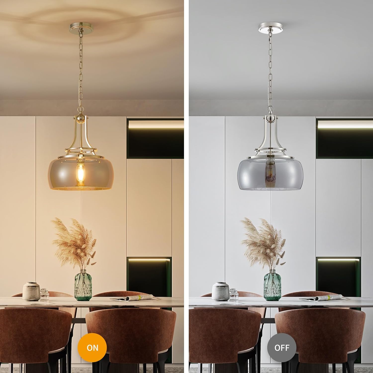 - Design: This rustic farmhouse Wuzups pendant chandelier light with design offers a modern interpretation of a classic urban-industrial style, which adds a vintage flair to your space. It comes in a nickel finish and features a prominent round electroplated gray glass shade. The mouth-blown glass has a few pinprick bubbles that add to the vintage look and feel.