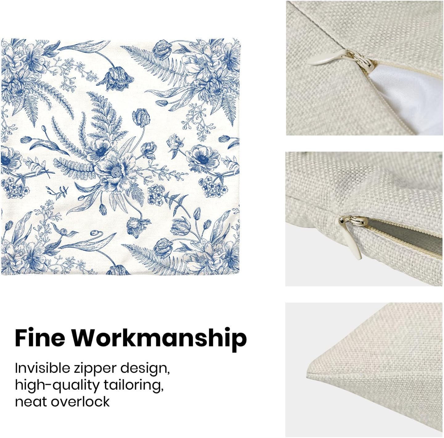 - 【Spring Pillow Covers】 Our Chinoiserie floral throw pillow covers 24x24 inch are made of excellent breathable polyester cotton fabric. The Blue and White floral decorative pillow covers is durable, soft and skin-friendly. The plant outdoor pillow covers adopt exquisite edging technology and four sides of our floral pillow covers are sewn firmly, which is not easy to open the line.