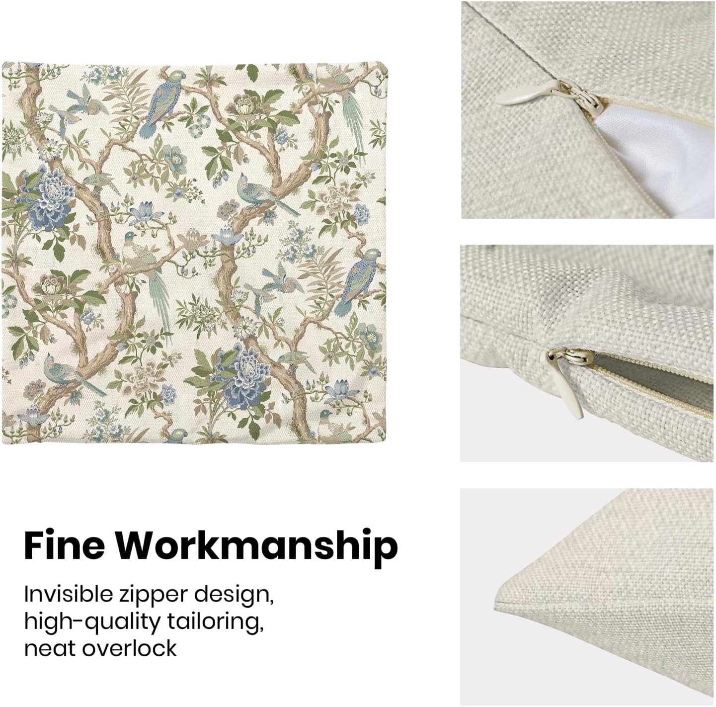 - 【Square Pillow Covers Size】 Chinoiserie flower birds pillow case set includes 2 pcs of farmhouse couch pillow covers (NO Pillow). Home decor farmhouse pillow covers measures 20x20 inch/ 50x50 cm. All the floral decor throw pillow covers have a hidden zipper. It is easy to insert or remove the pillow core to replace the spring pillowcase. Easy to clean and wash, sturdy and not easy to damage.