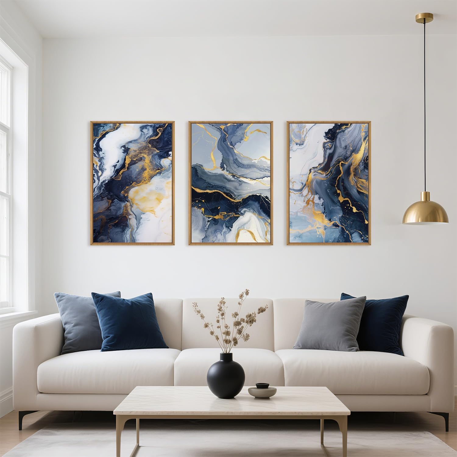 - 【Perfect Home Decoration 】By adding this blue gold black wall decor to your living room, bedroom, bathroom or any other interior design can create a leisurely environment for your room. It seamlessly fits into various settings, such as the living room, bedroom, bathroom, dining room, hallway, kitchen, hotel, office and anywhere you can think of.