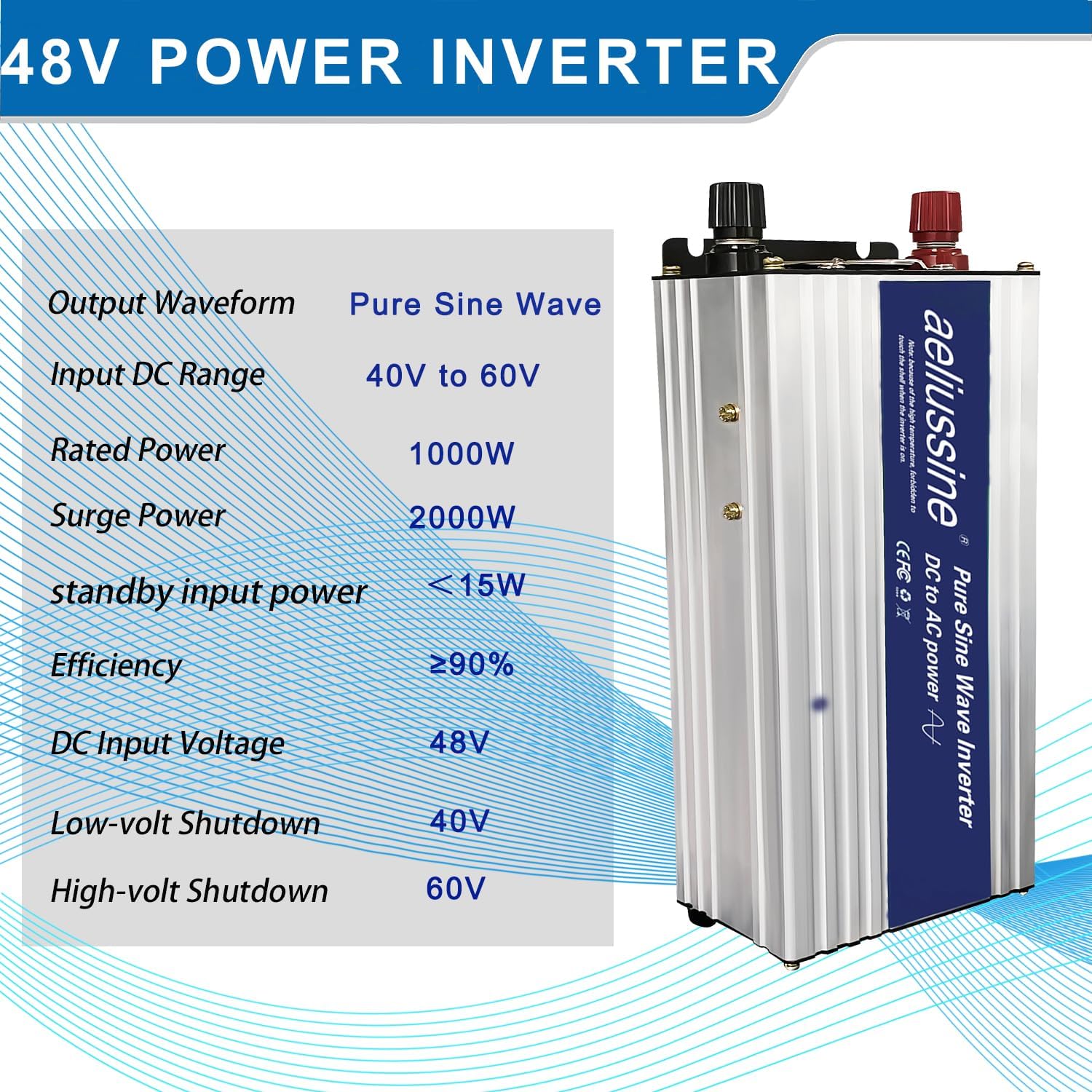 1000W Pure Sine Wave Inverter-48V DC to 110V 120V AC Power Converter with 2 AC Outlets, 48 Volt Power Inverter for Home, Emergency Power