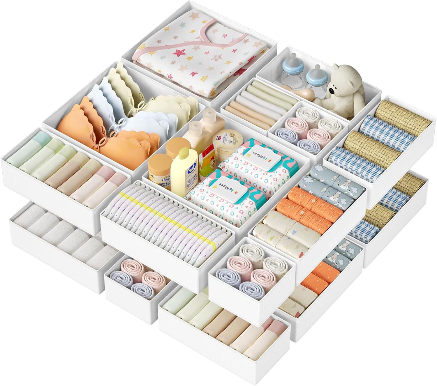 - [24-Piece Value Fabric Drawer Organizer Set]: DIMJ 15-Piece drawer organizer bins provides an abundance of options for your storage needs, making it a highly valuable choice. If our storage box does not meet your expectations, feel free to email us, and we will resolve the issue as quickly as possible