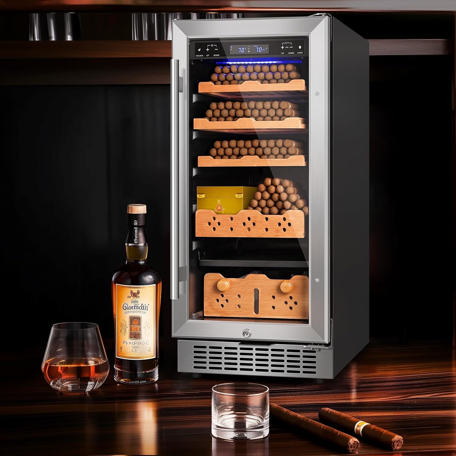 - Elegantly Transparent Display: Easily admire your cigar collection through the clear glass door, adding a touch of class to your storage experience