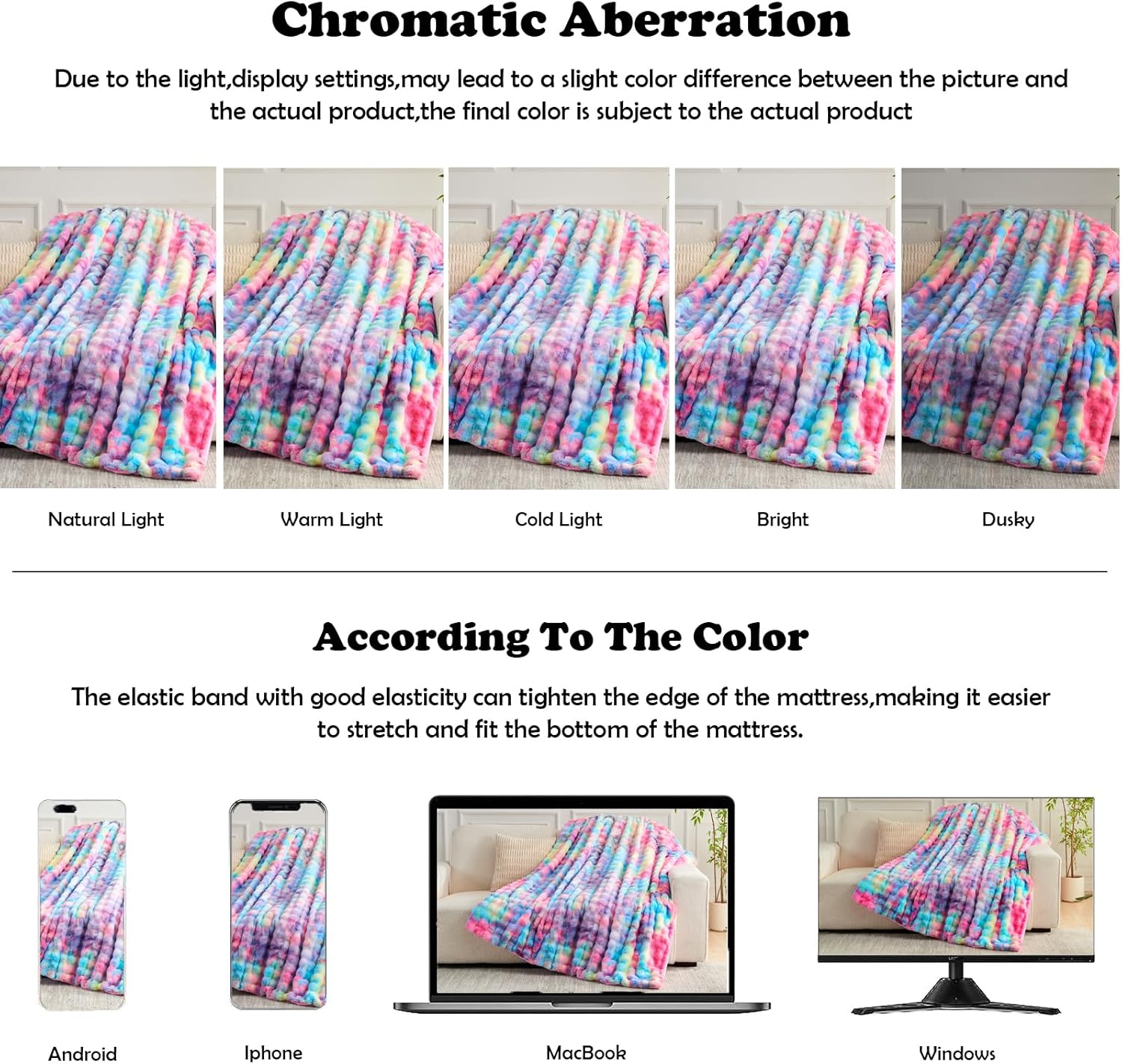 NEWCOSPLAY Faux Fur Throw Blanket Dark Rainbow Luxury Fluffy Thick Warm Bubble Blanket for Couch Sofa Bed 700GSM (Dark Rainbow, Throw(50"x60"))