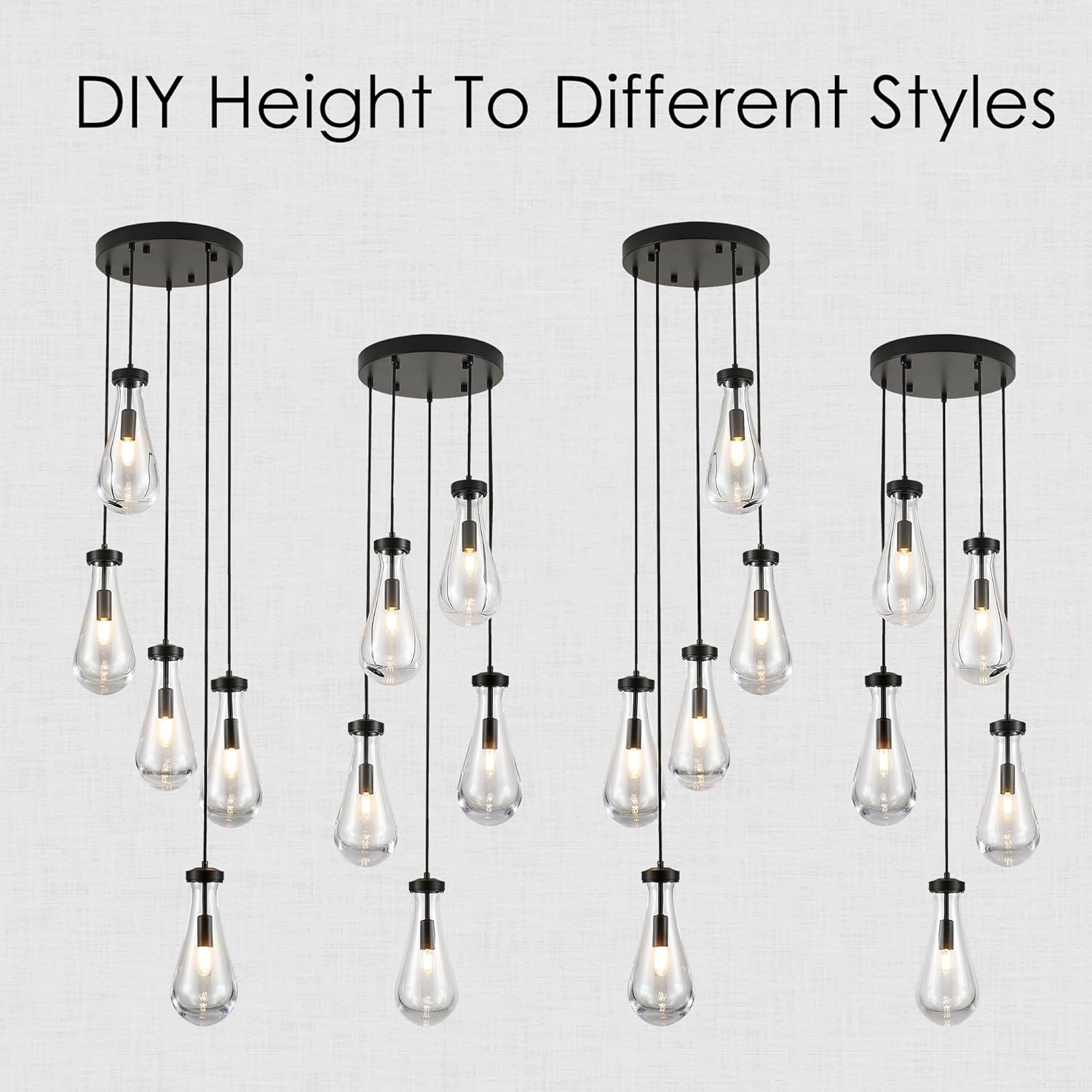 5-Light Raindrop Pendant Light Fixtures, Black Glass Pendant Lighting, Teardrops Modern Hanging Light for Entryway Foyer Kitchen Island Dining Living Room Hallway