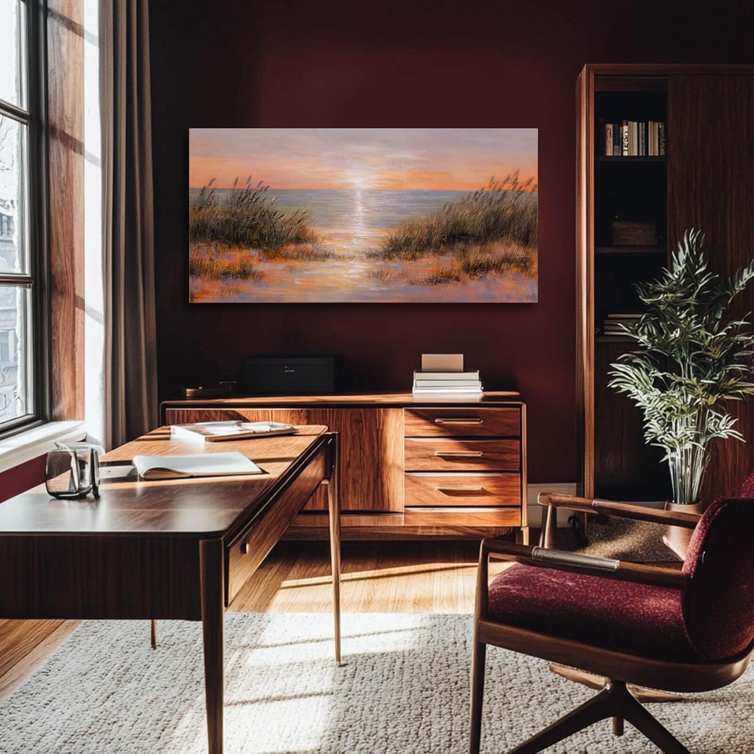 Coastal Wall Art Colorful Scenery Artwork Orange Sunset Wall Decorations for Living Room 24"x48" Nature Photo Prints for Bedroom Dining Room