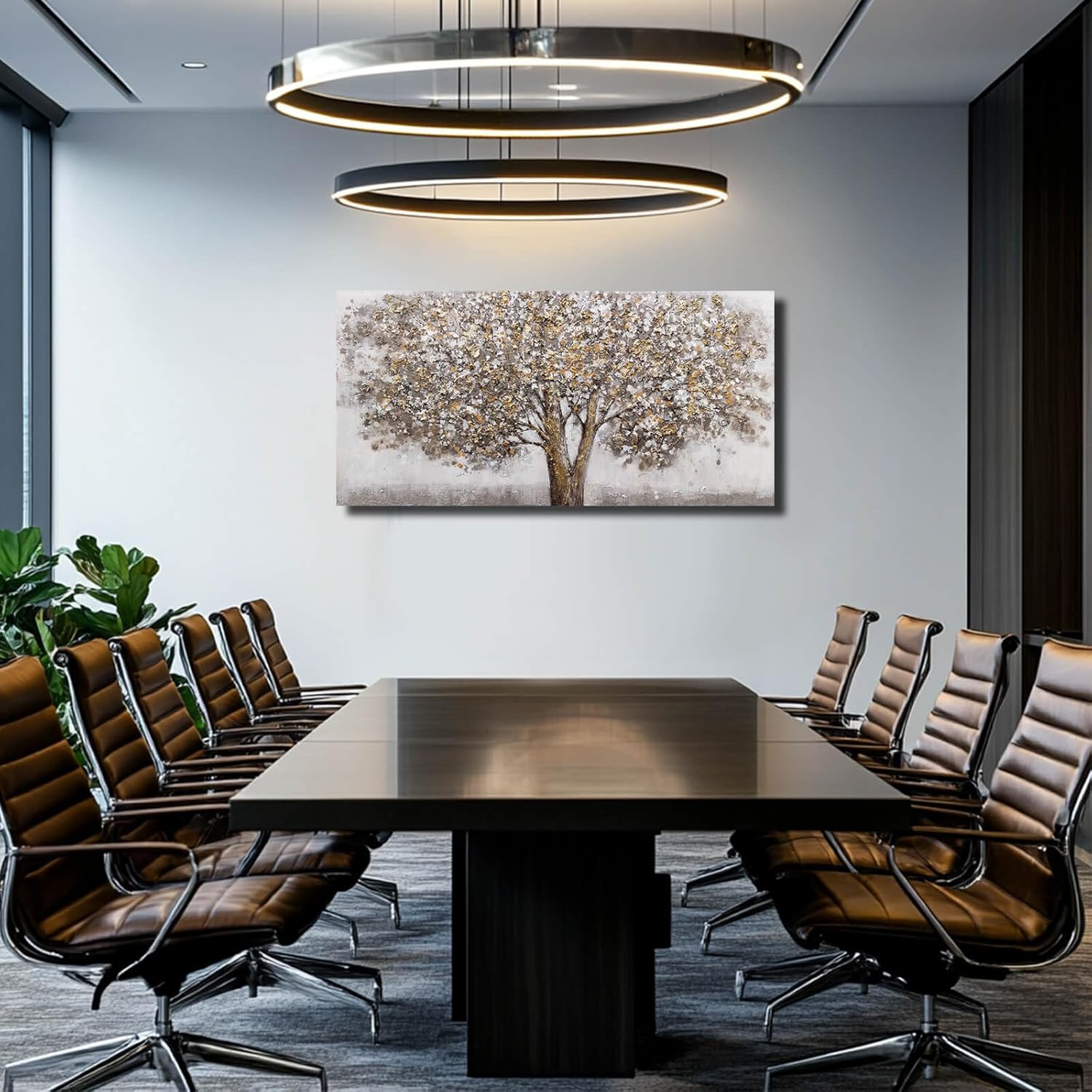 CHUDANHAO Grey Art Posters Big Tree Wall Decor Pictures for Office Gold and White Wall Art Botanical Painting for Living Room Kitchen 24x48 Inch