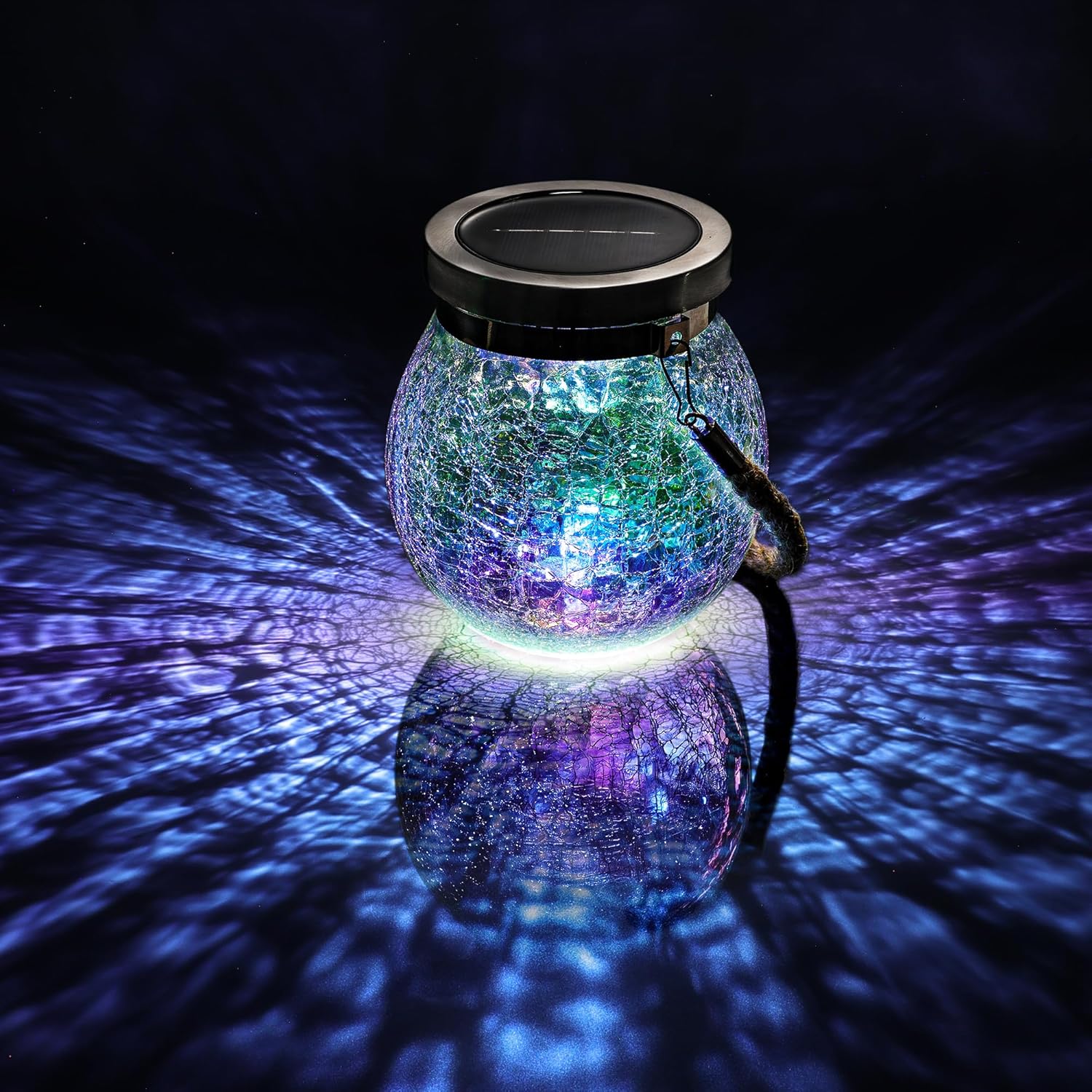 - 《Day to Dazzle, Night to Glow》In sunlight, the jar glimmers like liquid crystal—flashing purples, blues, and golds as you move. At night, a cool white LED shines through the fractured, rainbow-coated surface, projecting bursts of vibrant color onto nearby walls and tabletops. No color-changing bulb needed—the glass itself brings the magic.