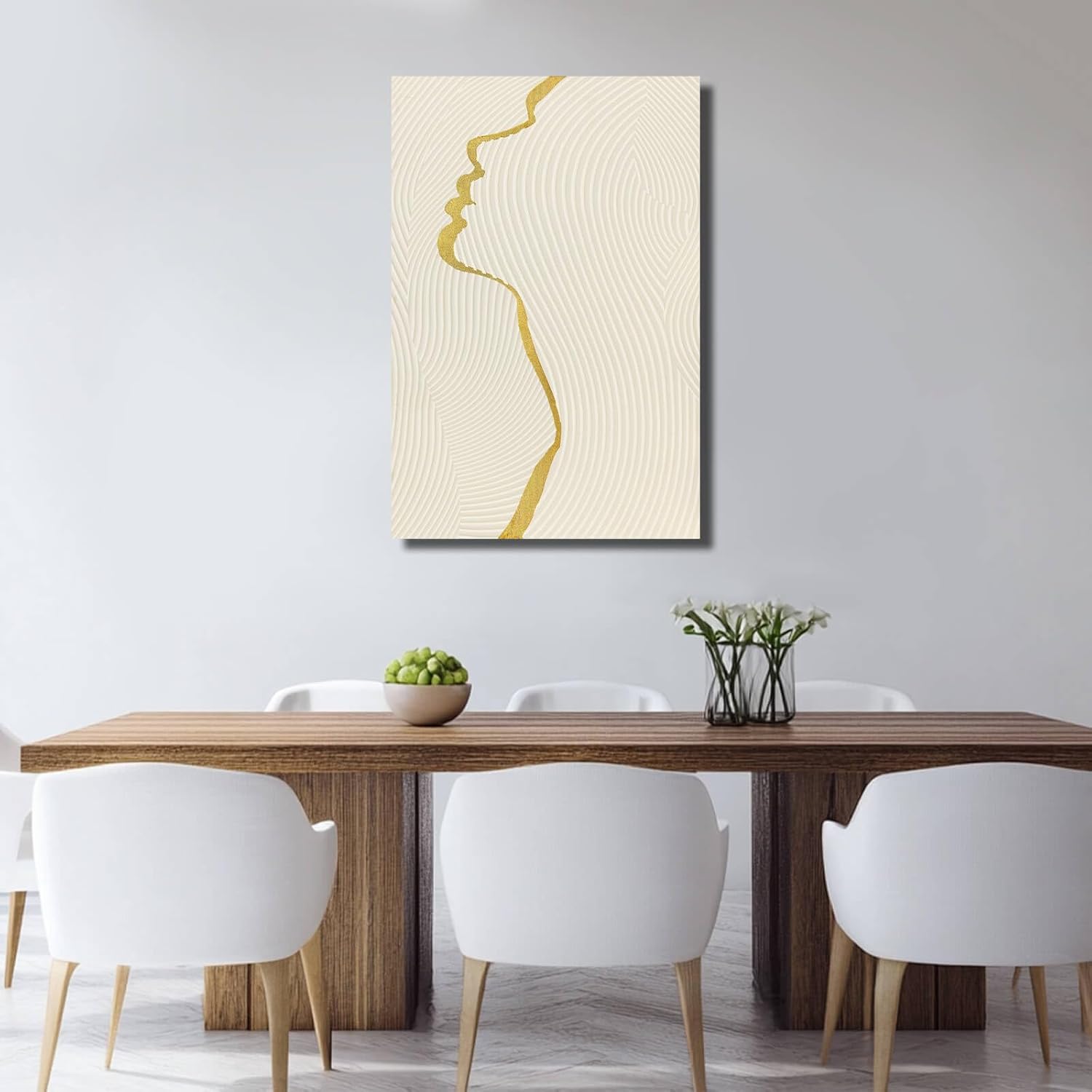 CHUDANHAO Gold Line Wall Pictures Minimalist Home Decor Neutral Canvas Paintings 24"x36" Wall Art for Dining Room Area Living Room Decorations