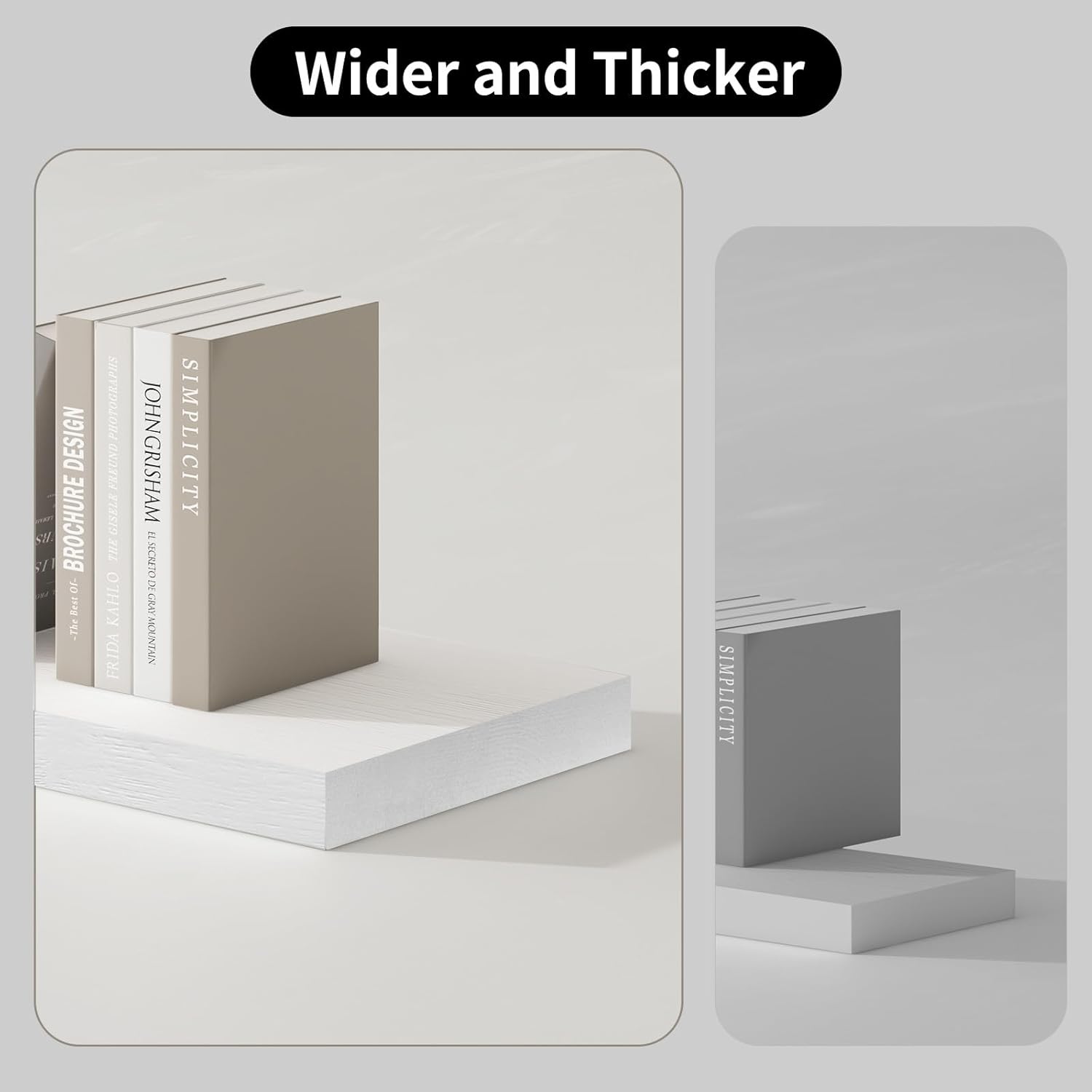 - Deep Floating Shelves: Crafted with extra-wide (8 inches) and thick (1.4 inches) wood, they are deeper and sturdier than regular floating shelves; Perfect for displaying books, plants, and decorative items, they make your space more organized