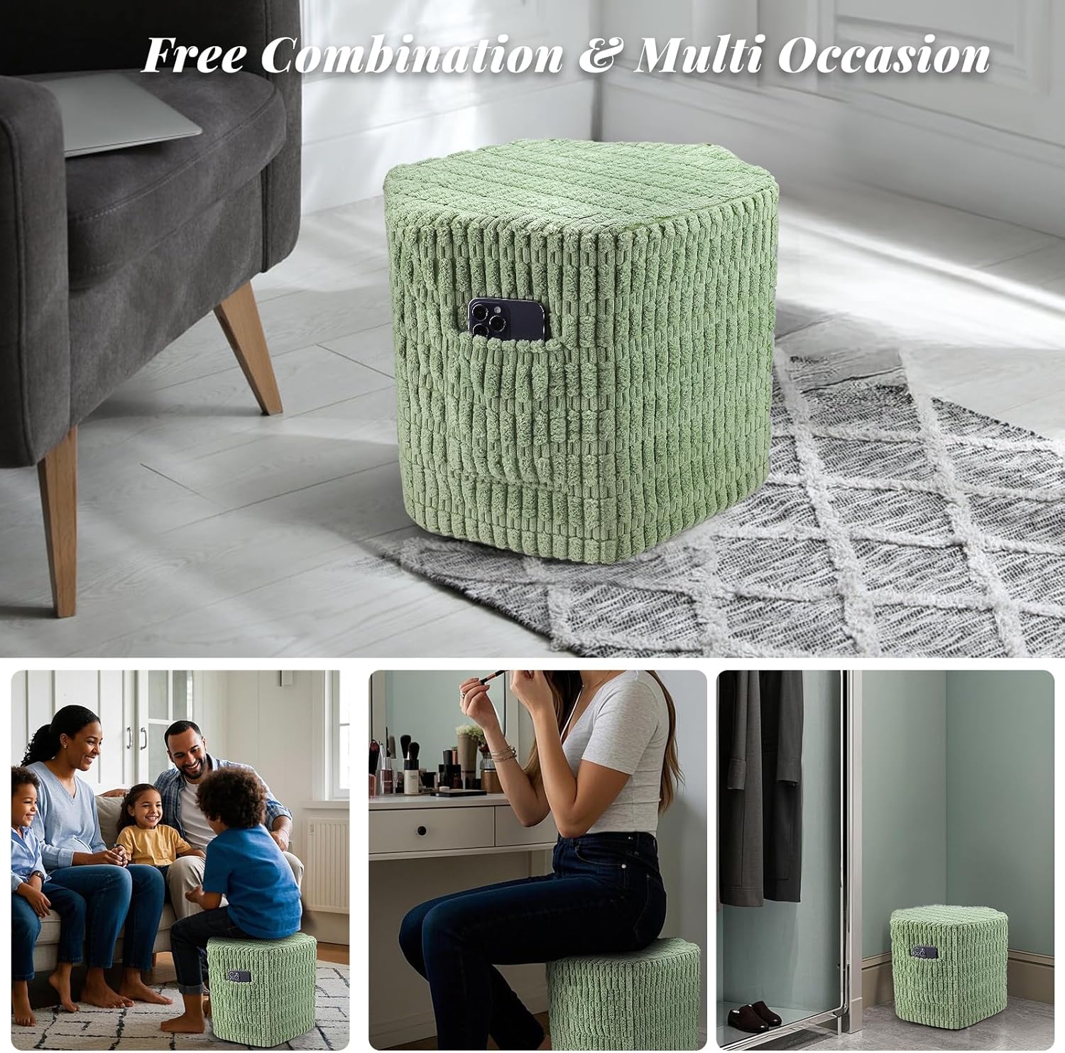 - No Assembly & Quick Fluffy: Our poofy ottoman is vacuum packed without assembly, just open the vacuum-sealed bag and watch it fluff up fast! The poufs for living room corduroy cover is removable and easy to clean—machine wash on gentle mode or rinse by hand