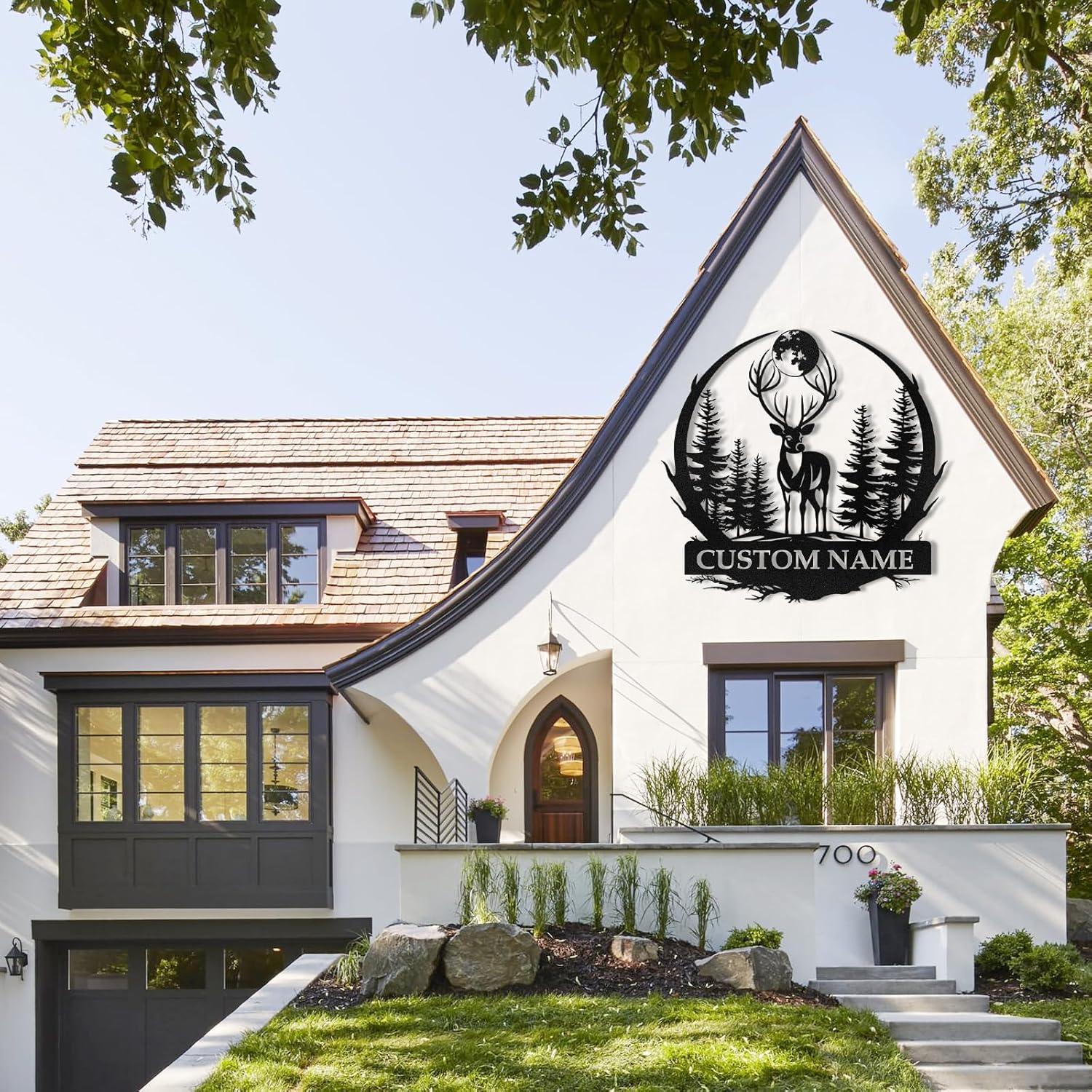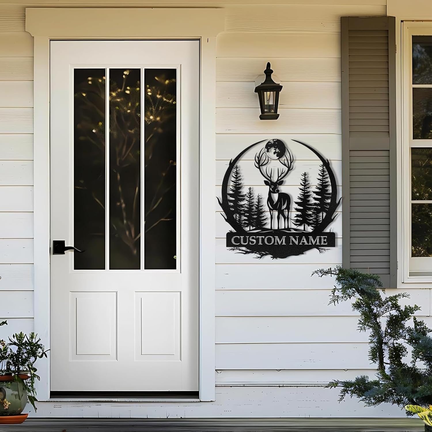 Metal Signs Customized, Personalized Deer Metal Cabin Sign, Forest Deer Wall Decor, Outdoor Metal Signs, Deer Hunter Gift, Deer Wall Art, Hunting Decor, Custom Family Name Sign, Cabin Decor