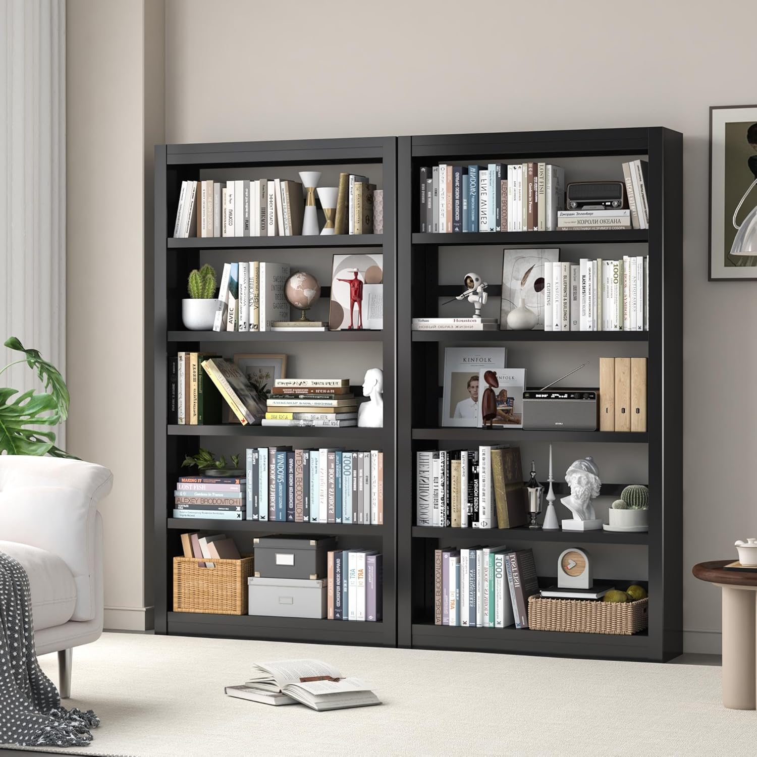 - ✅【Adjustable 5 Tier Bookshelf】 This black bookshelf design with easy-to-adjust storage shelves. Customize book shelves heights to fit tall books, decor, or storage bins. Perfect for maximizing vertical space in small rooms, offices, or living rooms. Holds up to 200lbs per shelf – 3x stronger than wooden bookshelves