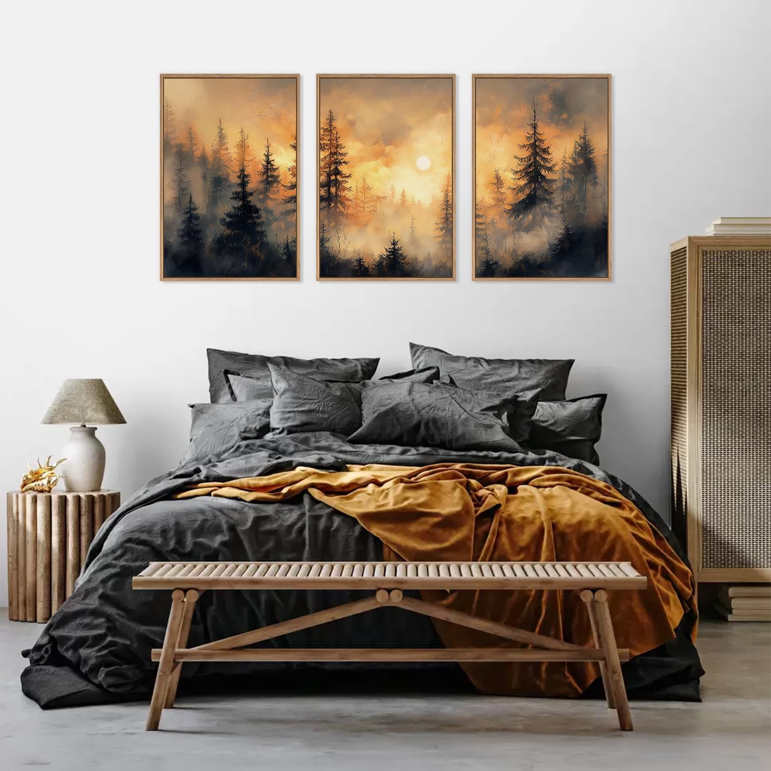 - Golden Sunshine Forest Wall Art: Featuring the beauty of nature, this Misty Forest Sunset Wall Decor creates a calm and peaceful atmosphere with its serene forest scene and warm sunset tones, making it easy to meet a variety of your daily home decor requirements. Large wall art paintings are suitable to hang on your living room wall to break up a boring blank wall and add some colorful natural elements to your room.