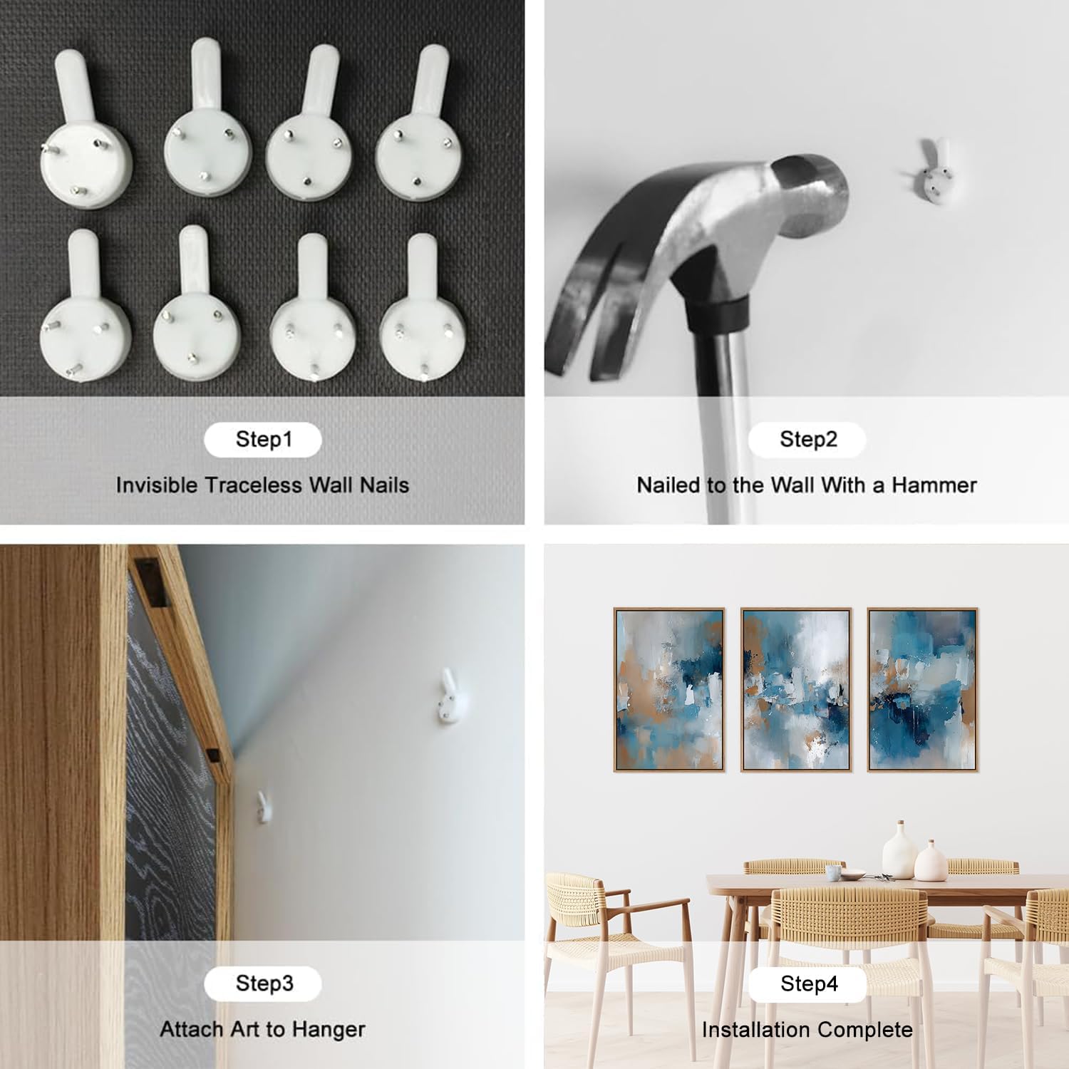 - Simple To Install: Each of these three modern blue landscape art prints pieces measures 16x24inches. It comes with all the necessary accessories so it's simple and easy to install. Simply choose where you want to decorate, make sure it's level and aligned the way you want it, and then nail it down with non-marking nails.