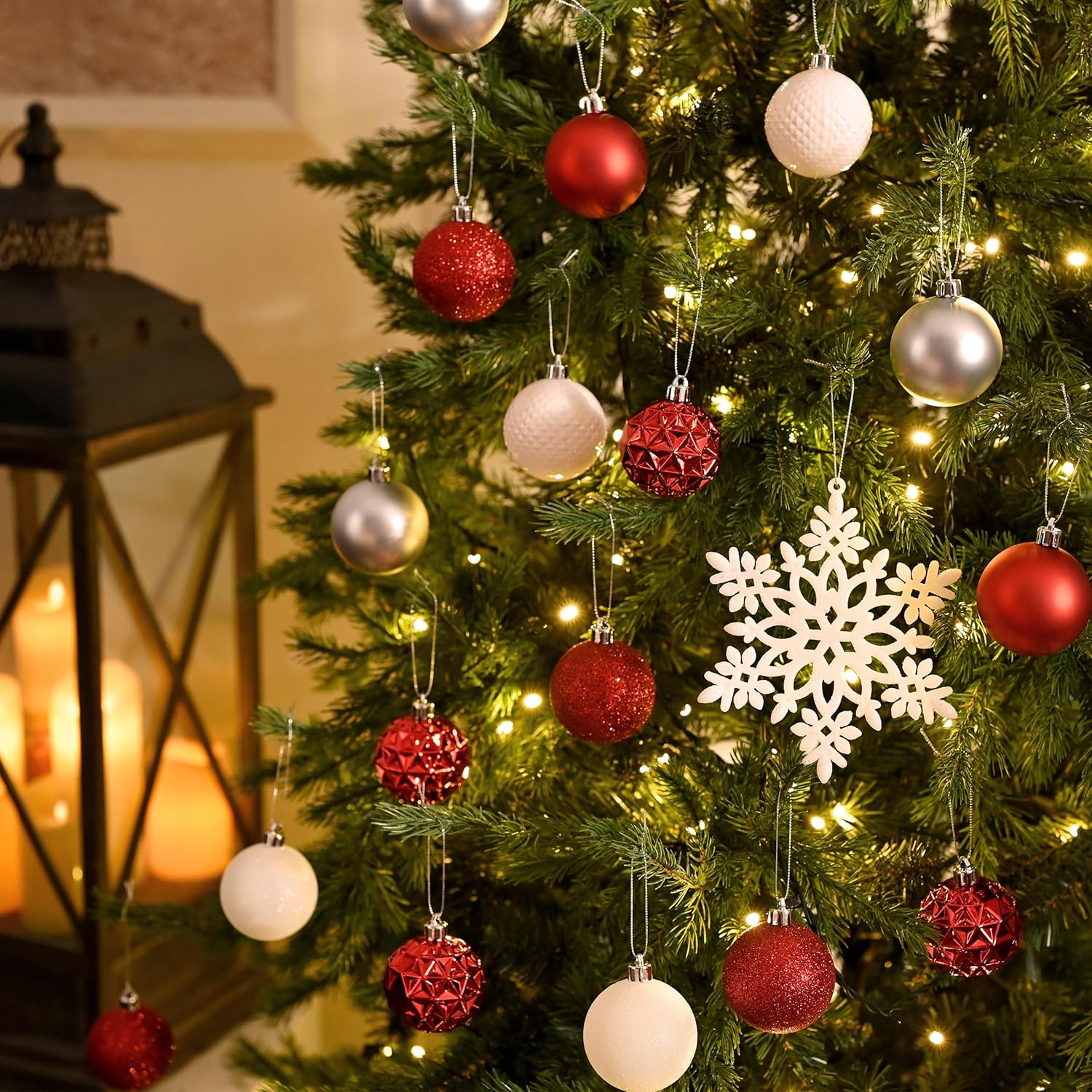 - 【Package and Size】This ornament ball set include 50pcs Christmas ornaments measuring 2 inches in diameter, featuring seamless connections for a polished look