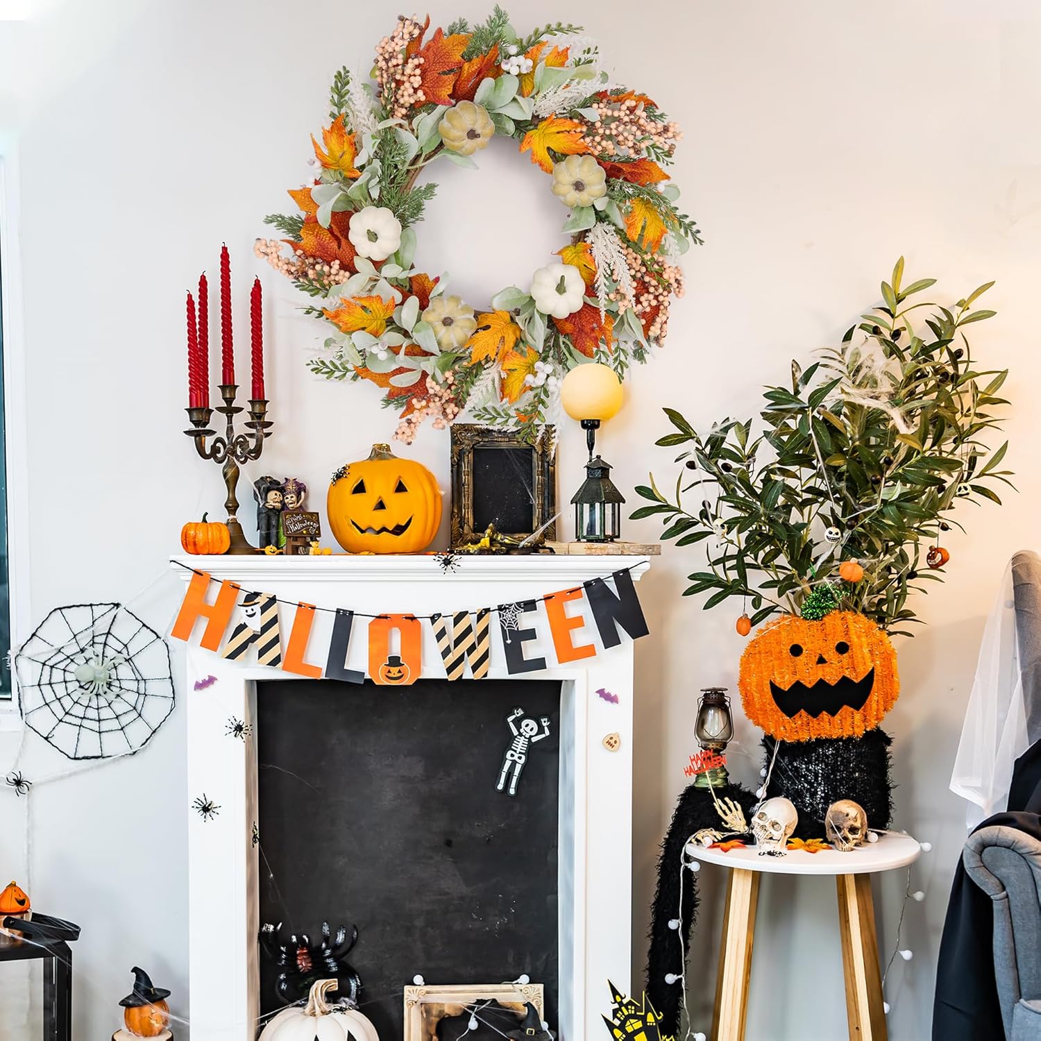 - 【Versatile Use】: This fall wreath can be used both indoors and outdoors. It can be hung above a fireplace, on a front door, on a living room wall, or used as a table decoration to celebrate the season and festivals, especially Halloween and Thanksgiving.