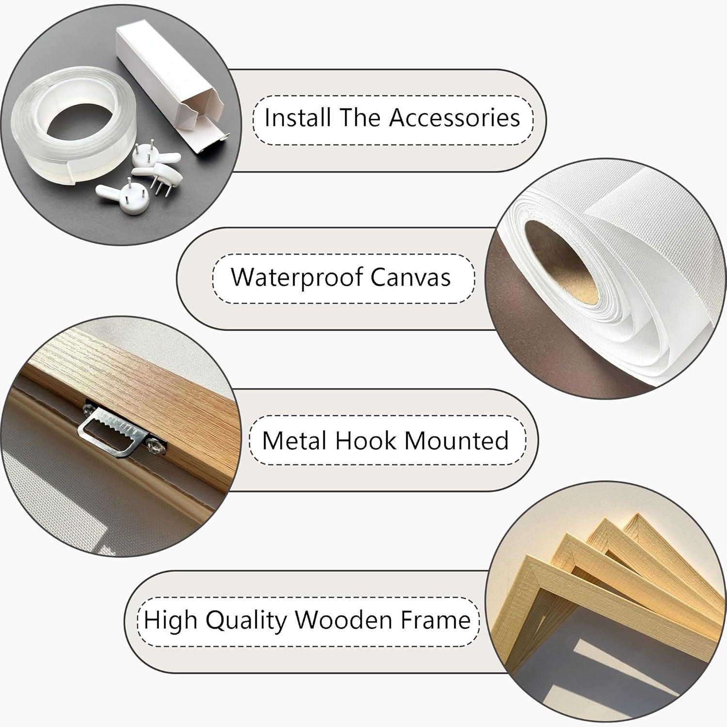 - Nature wall Art: Each piece comes pre-stretched on a solid wooden frame with pre-installed D-ring hooks and hanging accessories, making it easy to hang and instantly refresh your walls.