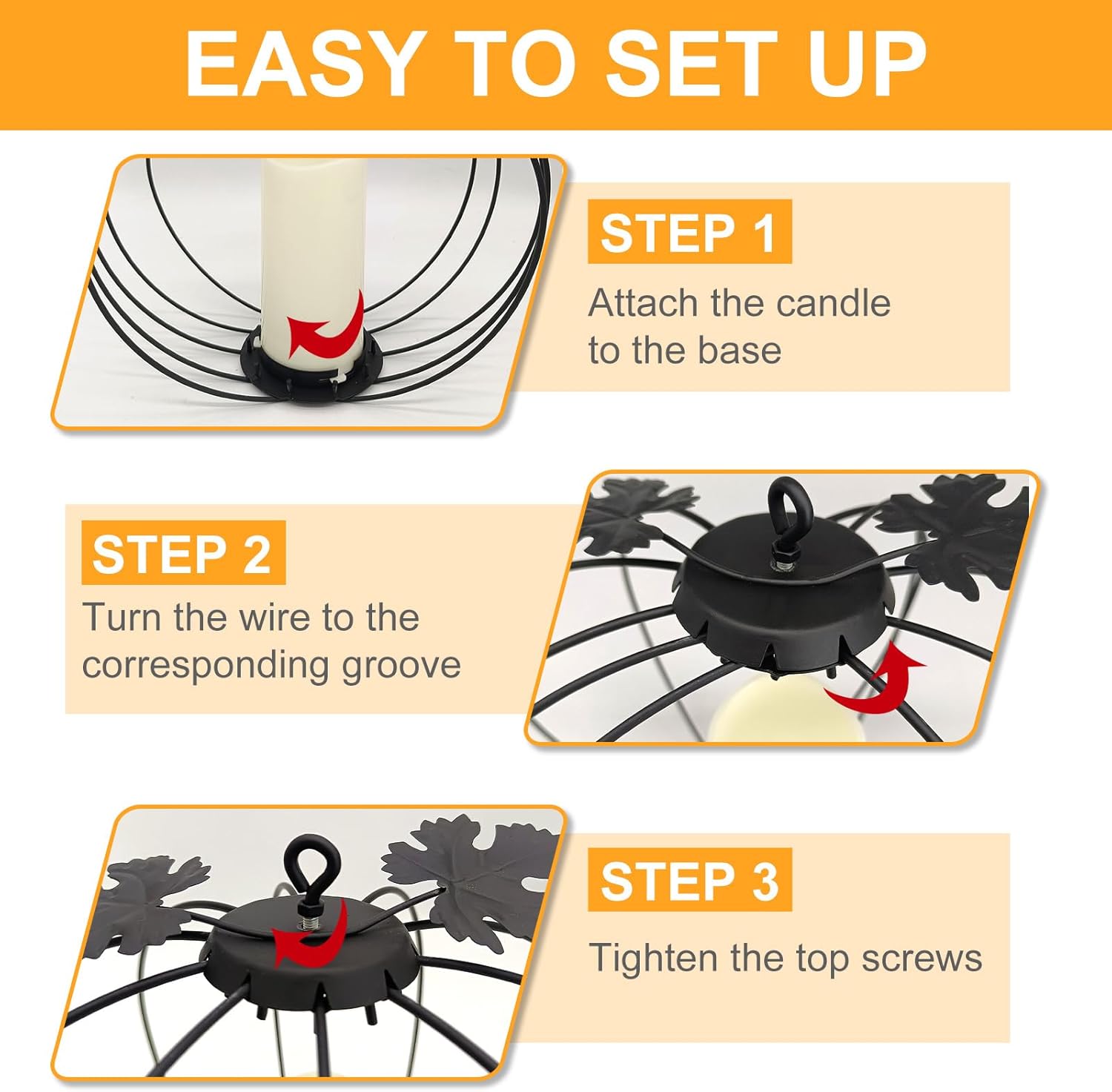 - Set of 3 Pumpkin Lanterns: This Jack-O-Lanterns set includes three size metal wire pumpkins with candle lights, each pumpkin features 3D design and textured leaves on the top make the pumpkin vivid and realistic. Perfect for Fall, Halloween and Thanksgiving décor