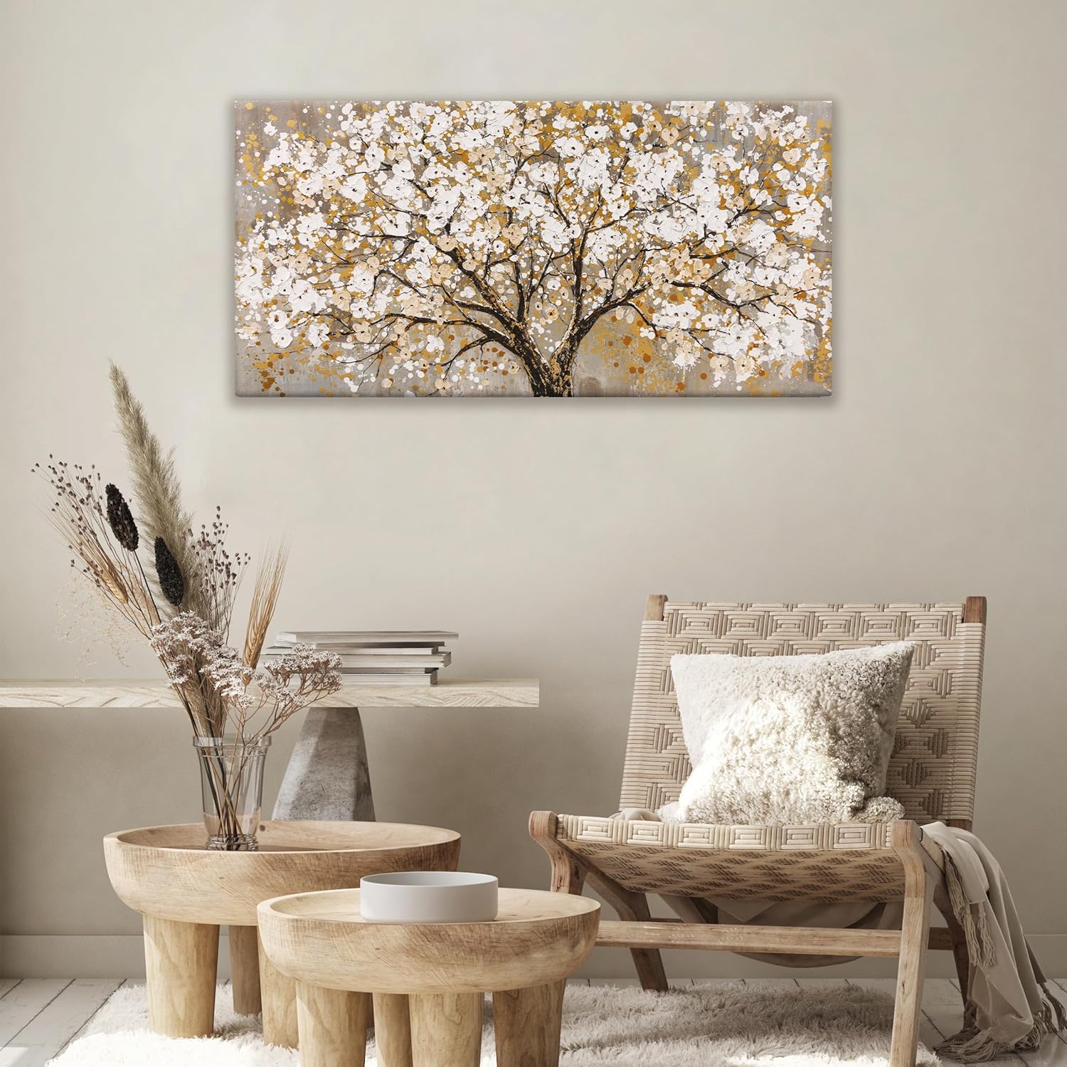 Wall Art Gold Tree Of Life Modern Artwork Canvas Painting Tree Pictures Canvas Art Wall Decor For Living Room Bedroom Dining Room Office Home Wall Decor 20"X40"