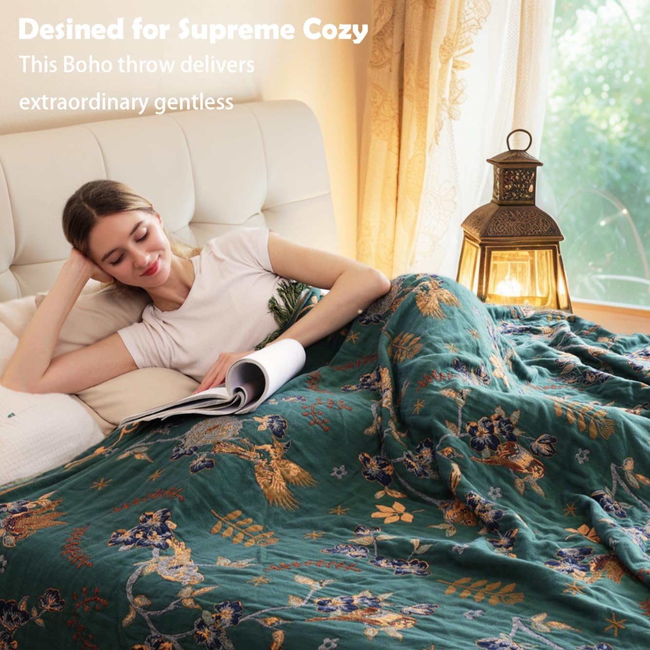 - PREMIUM 100% COTTON CONSTRUCTION: Crafted with exclusive 4-layer breathable cotton fibers in pure natural structure, premium cotton that delivers a baby-soft Class A texture,our boho throw blanket ensures superior softness & temperature regulation. Measuring 50" x 60" 1.2lb