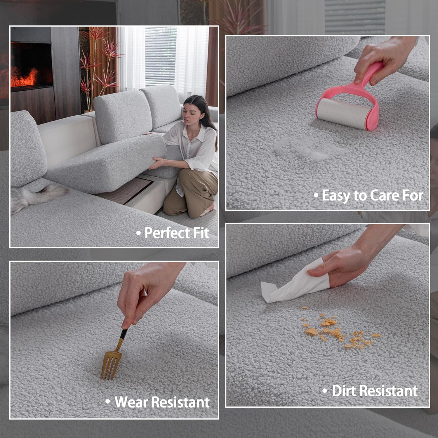 - 1.WHAT YOU WILL GET: 3*Seat Cushion Cover S + 1*Chaise Cushion Cover.Suitable for sofa seat cushions with Length: 23-35 inches, Width: 21-31 inches, Height: 4-9 inches, and chaise cushion with Length: 63-74 inches, Width: 31-44 inches, Height: 4-9 inches.This sectional couch cover is tailor-made for your sofa and can effectively resist stains, dust, pet hair and daily wear and tear.Made of soft Polar Fleece fabric, it adds a cozy and warm touch to your seat.