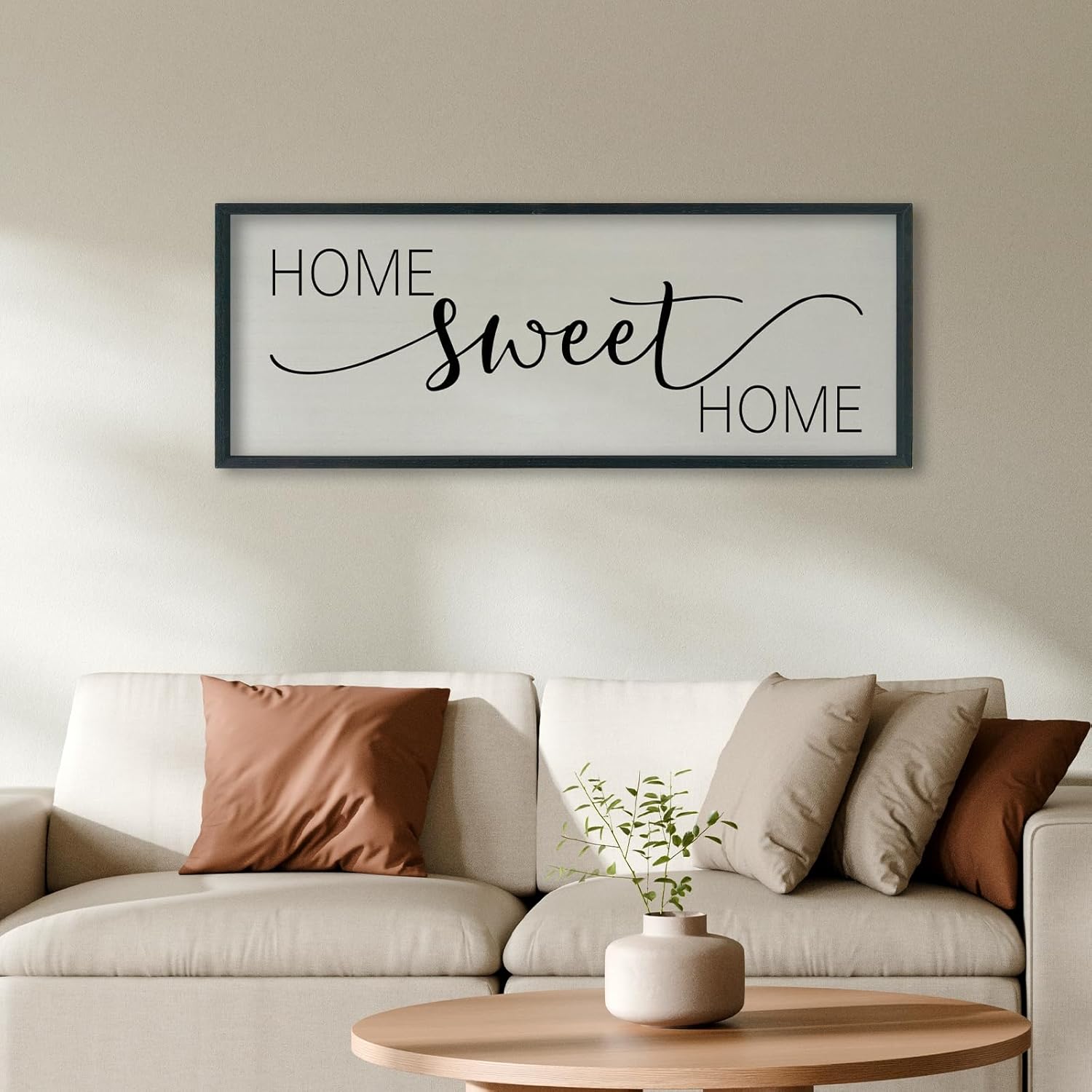 SRSZHIYUE Home Sweet Home Sign 40"x15" for Farmhouse Rustic Large Family Living Room Over Couch Modern Horizontal Wall Decor, Wood Framed Plaques Art Decorative (Black)