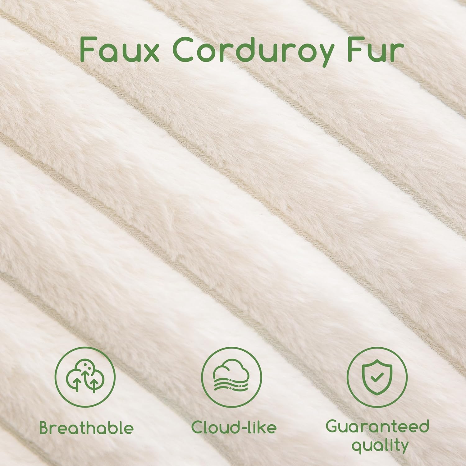 HIGOGOGO Round Stuffed Pouf Ottoman, Stripe Faux Fur Poufs with Foam Chunk Filling, Furry and Fluffy Pouf Foot Stool Storage Ottoman, 26 X 18 Floor Poufs Foot Rest for Living Room, Beige