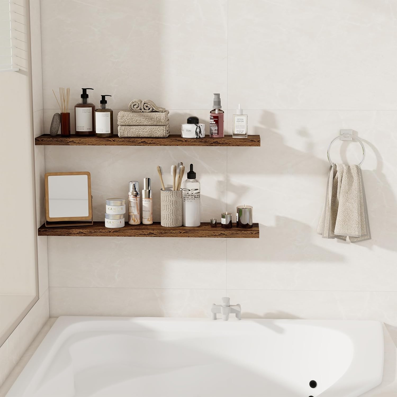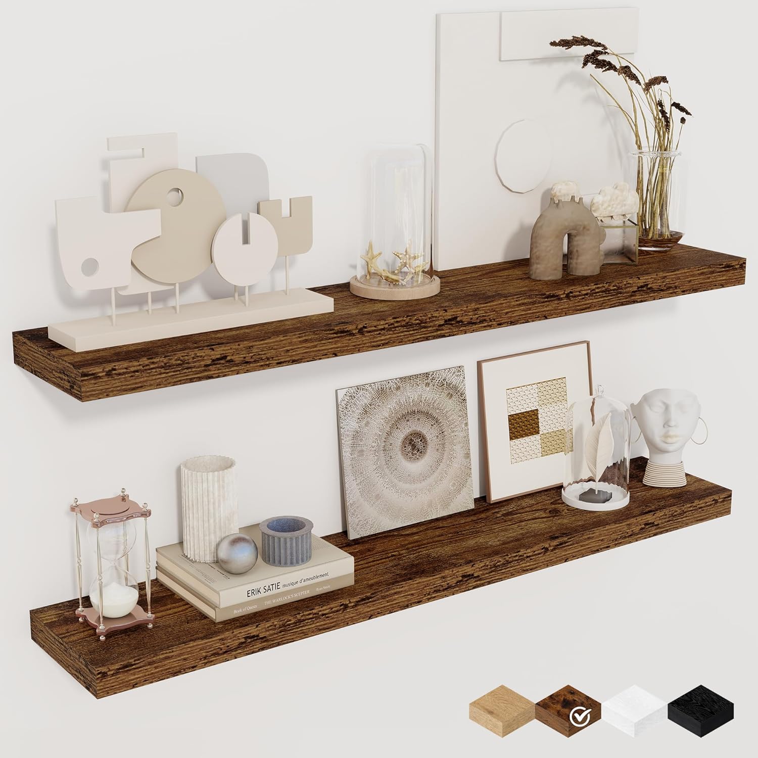 36Inch Floating Shelves for Wall 2 Pack Wood Shelves for Kitchen, Bathroom, Bedroom Wall Mounted Rustic Wood Floating Shelf with Invisible Brackets for Books, Storage, Decor, Rustic Brown