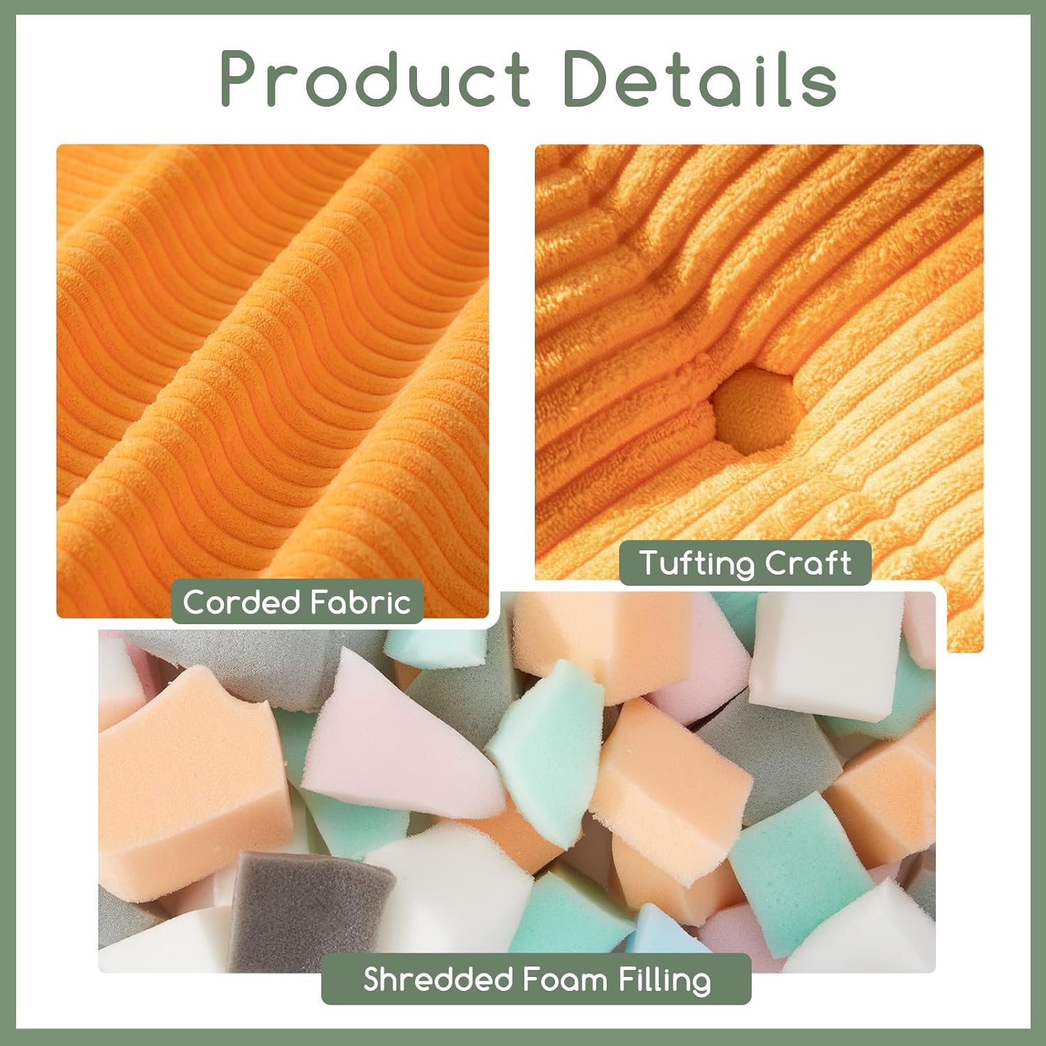 HIGOGOGO Square Stuffed Pouf Ottoman, Corduroy Poufs with Foam Chunk Filling, Furry and Fluffy Pouf Foot Stool Storage Ottoman, 25.6 X 25.6 Floor Poufs Foot Rest for Living Room, Orange