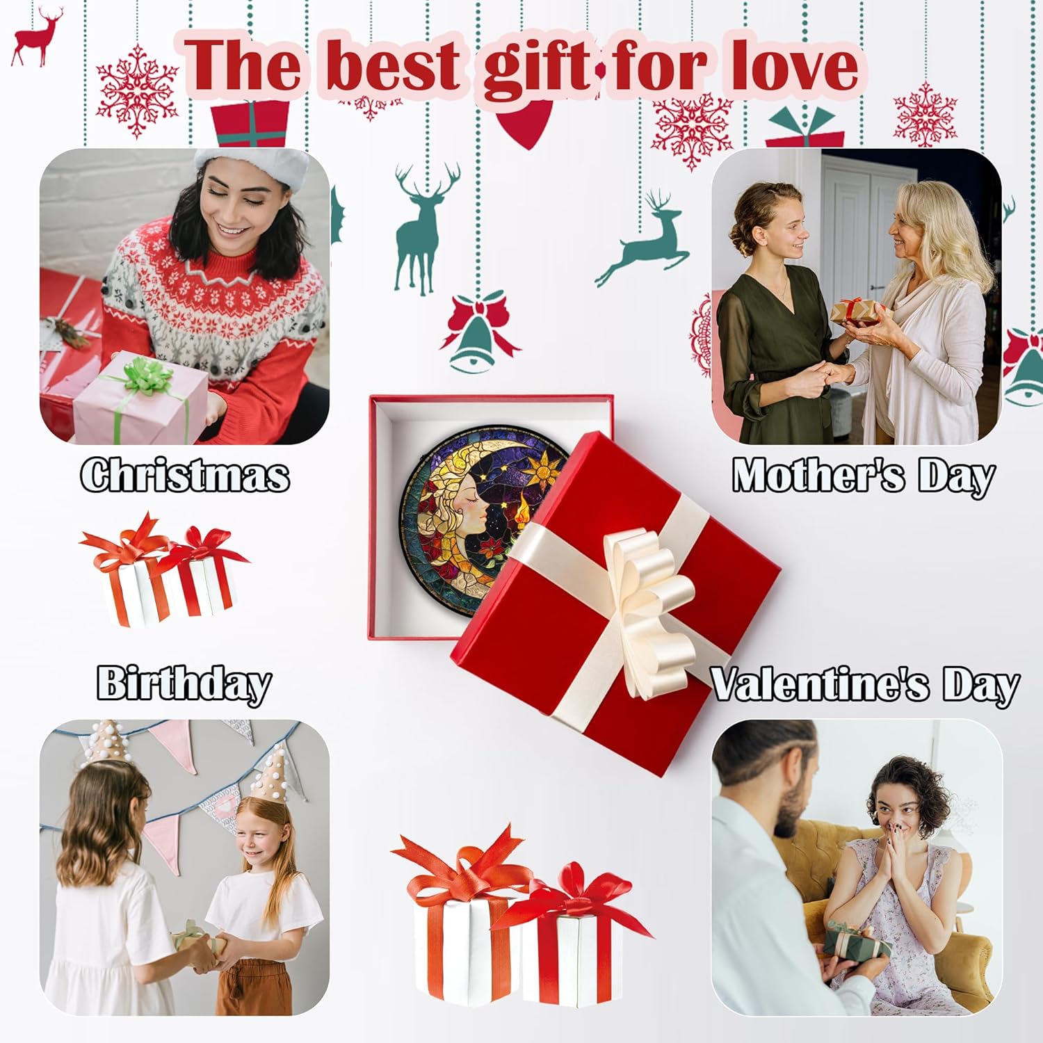 Stained Glass Window Hanging, Moon Goddess Torch Suncatcher Diamond Glass Panel Hangings Dream Sun Catchers Decor for Birthday for Women, Men, Wife, Aunt, and Mom 14.9x14.9 in
