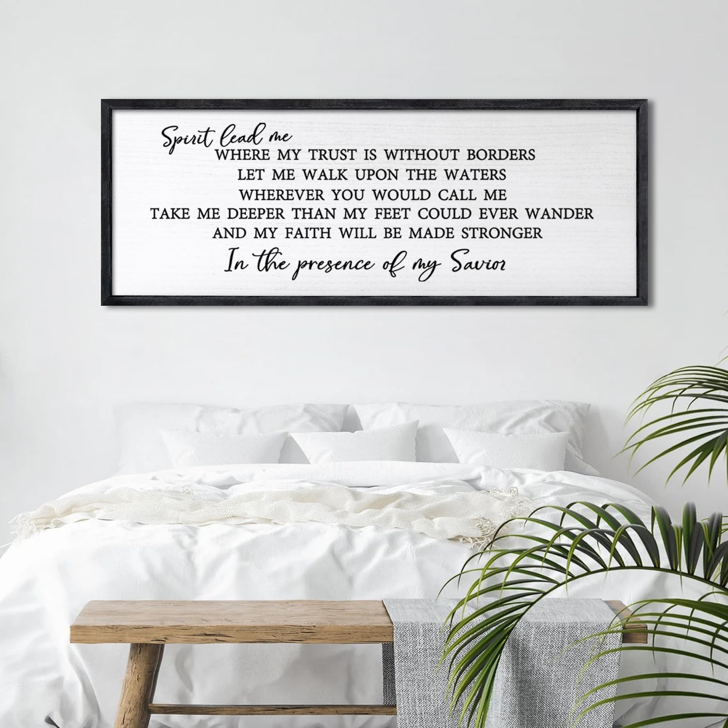 Spirit Lead Me Wall Art Decor 24×10 Inch Christian Scripture Office Inspirational Lyrics Ready to Hang Wooden Framed Sign (Black)