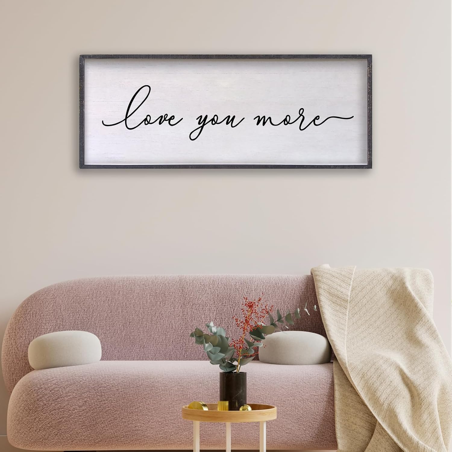 Love You More Sign Wall Decor 24×10 Inch Above Bed for Master Bedroom Ready to Hang Wood Framed Art (Black)