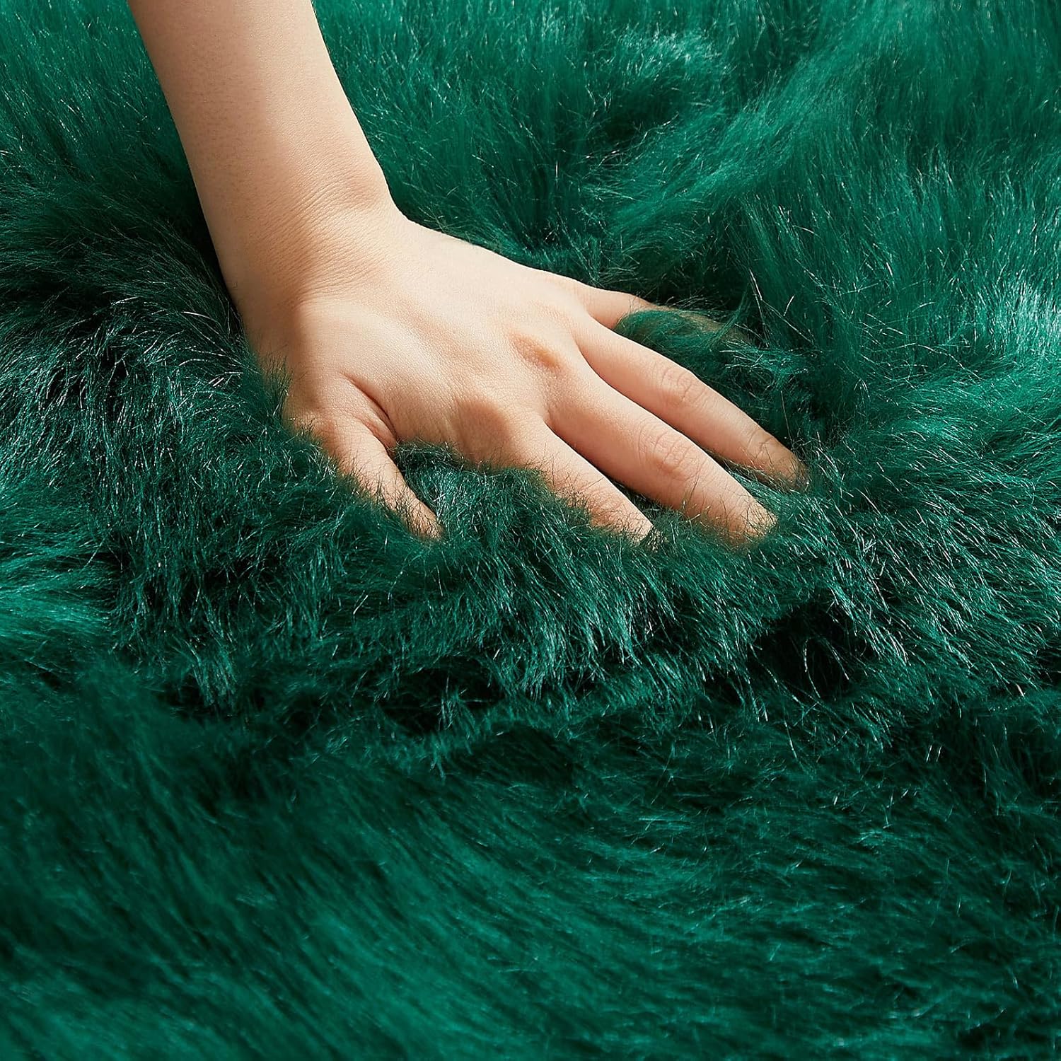 AMTOVO Faux Fur Rug, Dark Green Ultra Soft Fluffy Shag Sheepskin Rug, 2 x 6 ft Runner Area Rugs for Bedroom Sofa Throw Cushion Room Decor, Rectangle