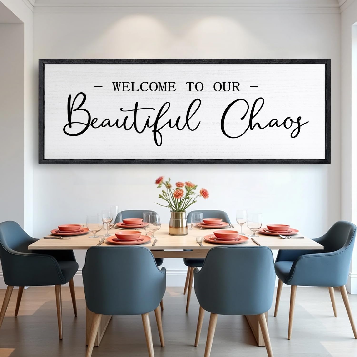 Welcome To Our Beautiful Chaos Sign Wall Decor Framed Wood 32X12 Inch For Rustic Home Living Room Entryway Bedroom Hanging Art (Black)