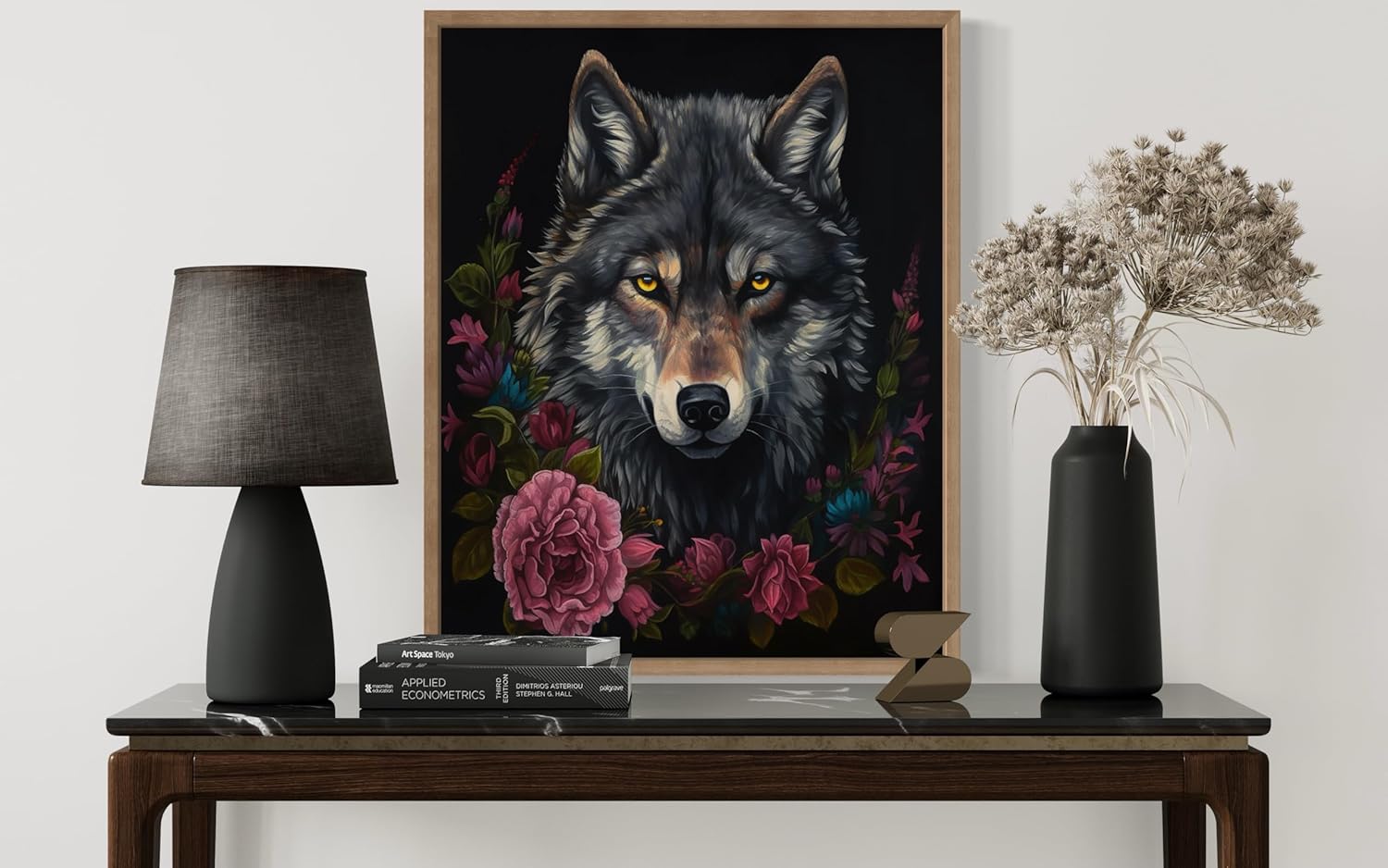 Vintage Wolf Poster Art Print, Halloween Scary Wall Art Academia Spooky Painting Decoration for Horror Prints, Gothic Posters Bedroom Decor 89 (Vintage Wolf, 16 x 20 inches, Wood Frame)