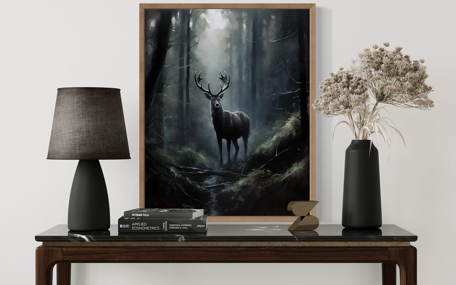 Deer in Forest Poster Art Print, Halloween Scary Vintage Wall Art Academia Spooky Painting Decoration for Horror Prints, Gothic Posters Bedroom Decor 89 (Deer in Forest, 8 x 10 inches, Wood Frame)
