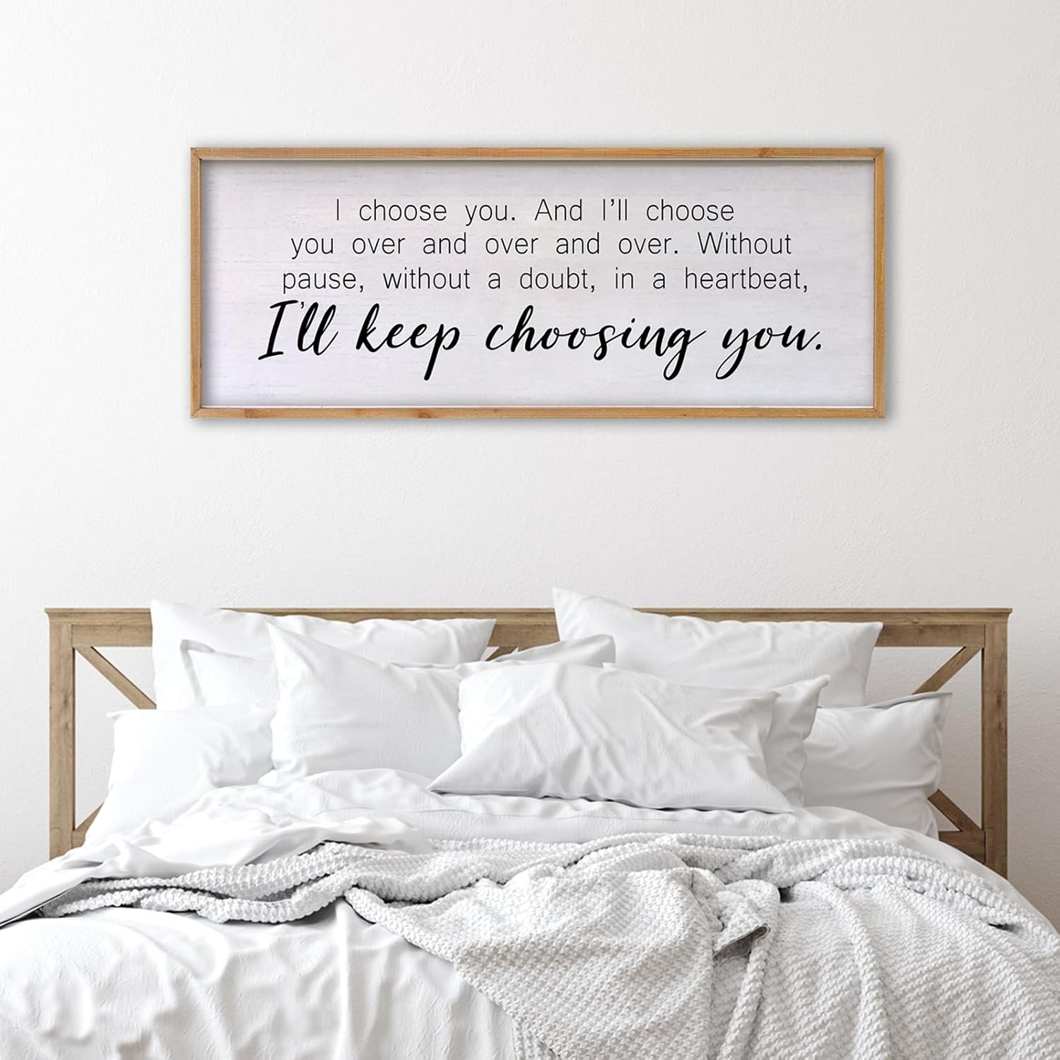 I Choose You Sign Wall Decor Art Above Bed 32X12 Inch I Love You Romantic Wood Framed for Master Bedroom Over Bed I'll Keep Choosing You Sign (Wood)