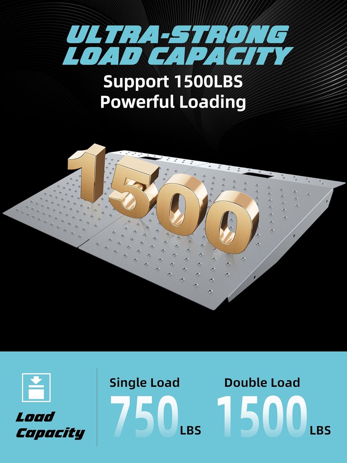 - 1500LBS Alloy Iron Loading Ramp for Shed: Built with ultra-strong alloy iron, this lightweight ramps for shed handles 1500 lbs effortlessly. Engineered for riding mowers, snow blowers & trailers without bending. Durable yet portable design!