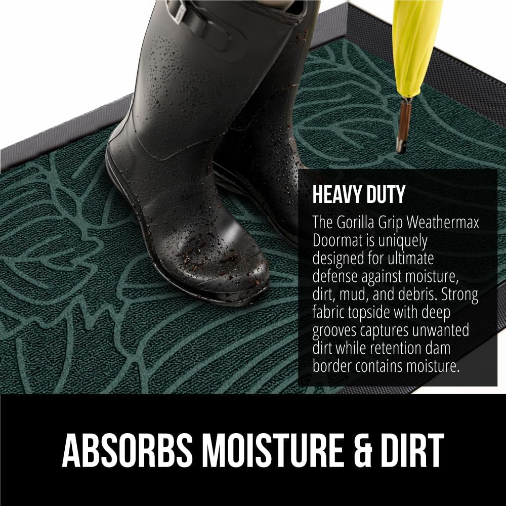 GORILLA GRIP 100% Waterproof All-Season WeatherMax Doormat, 34x58, US Designed Natural Rubber, Stain and Fade Resistant, Low Profile Indoor Outdoor Door Mats, Easy Clean Patio Mat, Green Palm