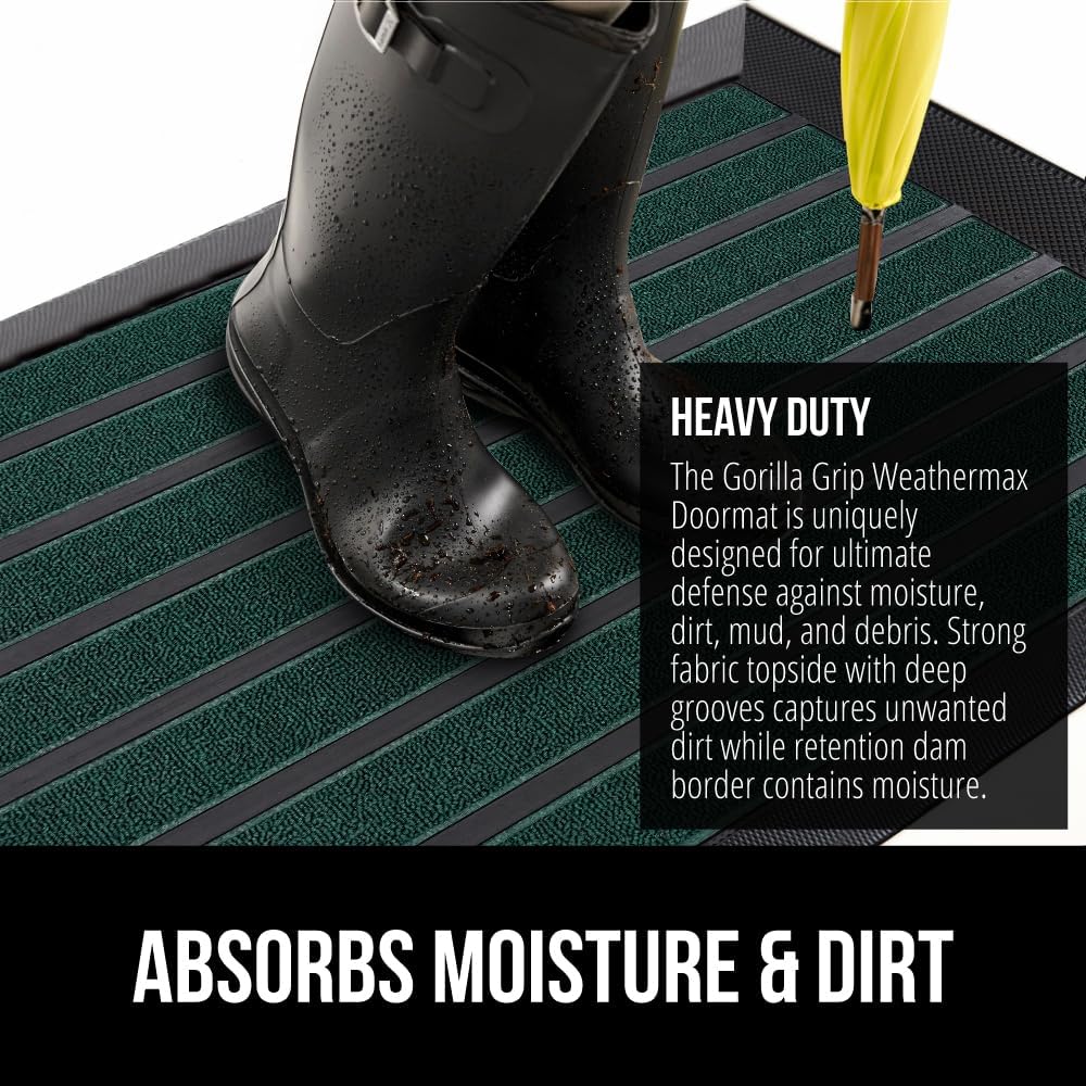 GORILLA GRIP 100% Waterproof All-Season WeatherMax Doormat US Designed Natural Rubber, Stain and Fade Resistant, Low Profile Indoor Outdoor Door Mats, Easy Clean Patio Mat, 23x35, Green Stripe