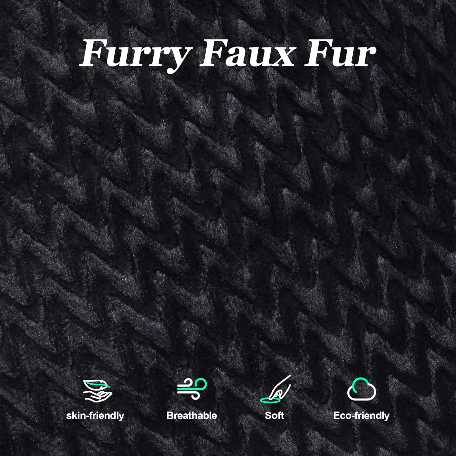 Hobestluk 3 in 1 Bean Bag Chair Giant Bean Bag Chairs for Adults with Chevron Plush Fur Cover Convertible Bean Bag Floor Cushion with Machine Washable Cover for Living Room (Chevron Plush Black)