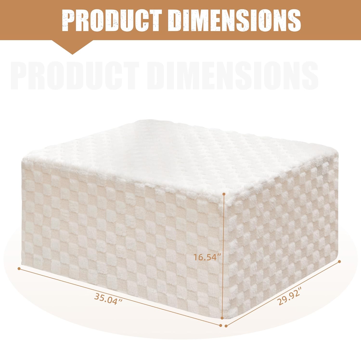 Hobestluk Rectangle Ottoman Memory Foam Footrest for Couch with Removable Cover Large Floor Seating for Adults Ottoman Coffee Table for Living Room, Bedroom or Office (Plush White, Footrest)