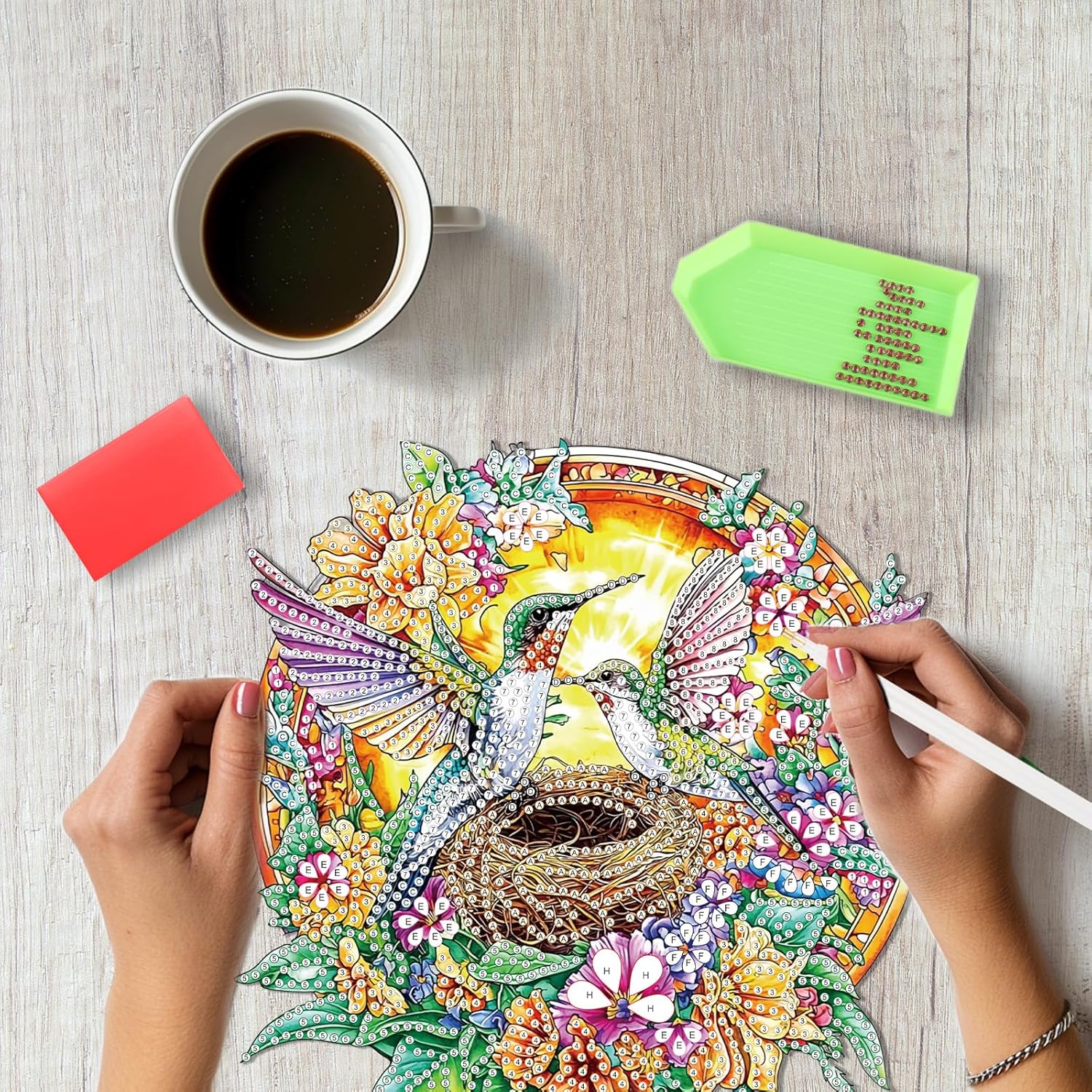 SENQAO Hummingbird Diamond Art Hanging Kit for Adult, Special Shaped Rhinestone, Double Sided DIY Acrylic Diamond Art Painting Window Pendants Home Garden Wall Hanging Kits Hanging Ornament