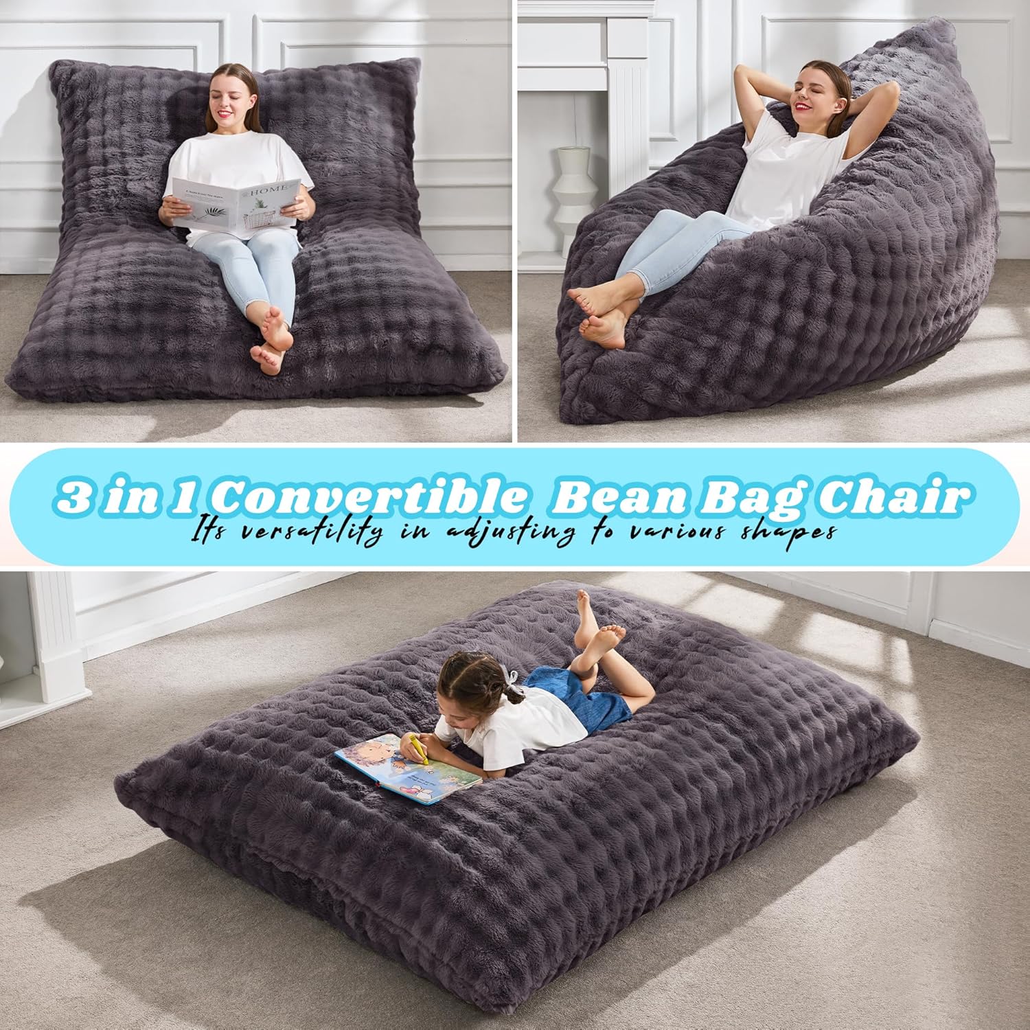 Hobestluk 3 in 1 Bean Bag Chair Giant Bean Bag Chairs for Adults with Bubble Cover Convertible Bean Bag Floor Cushion with Machine Washable Cover for Living Room (Bubble Dark Grey)