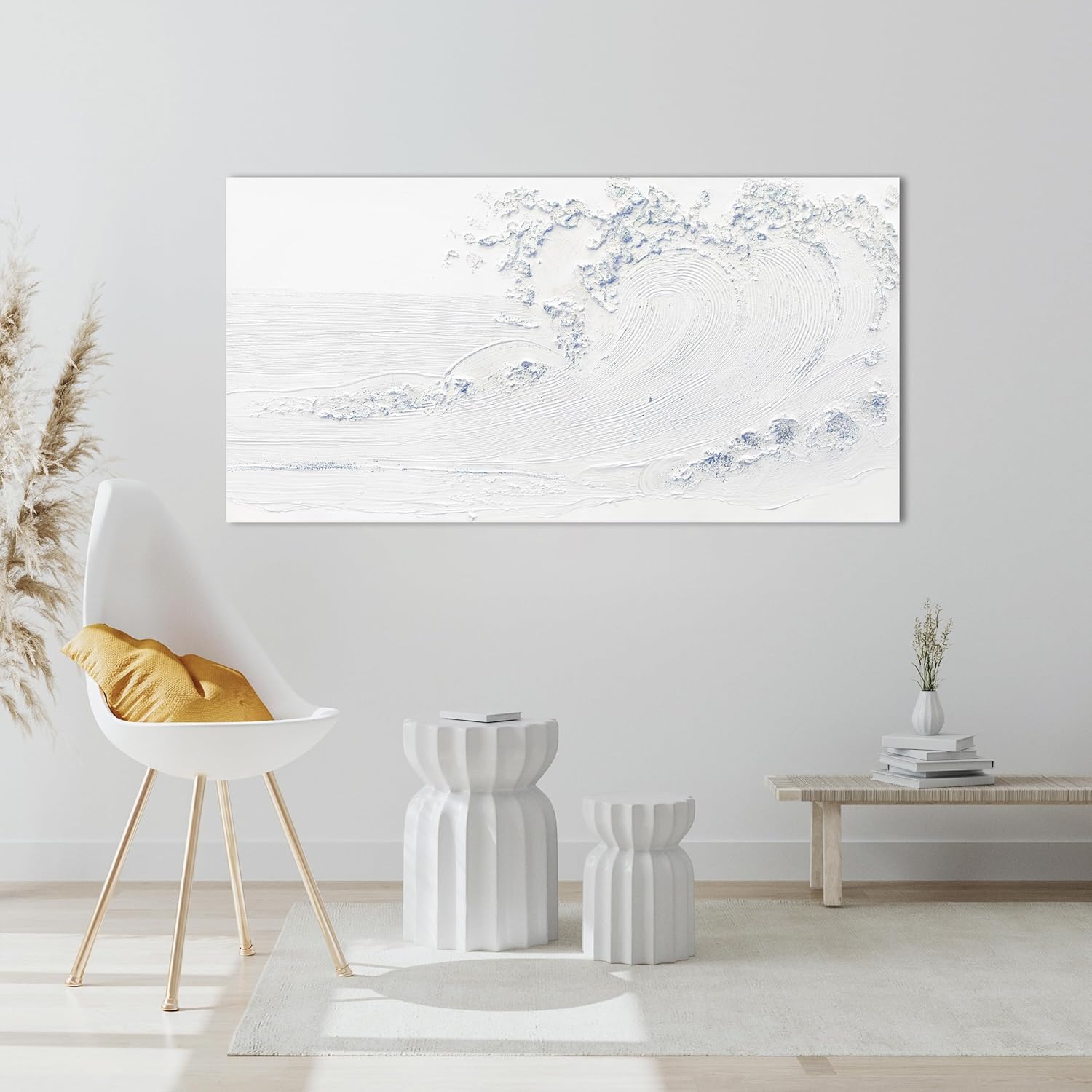 Canvas Wall Art Decor Modern Wall Art Pictures for Living Room White Blue Wave Wall Art Prints Wave Artwork for Walls Landscape Coastal Wall Art Decor Art Work for Home Office Room Wall Decor 20"x40"